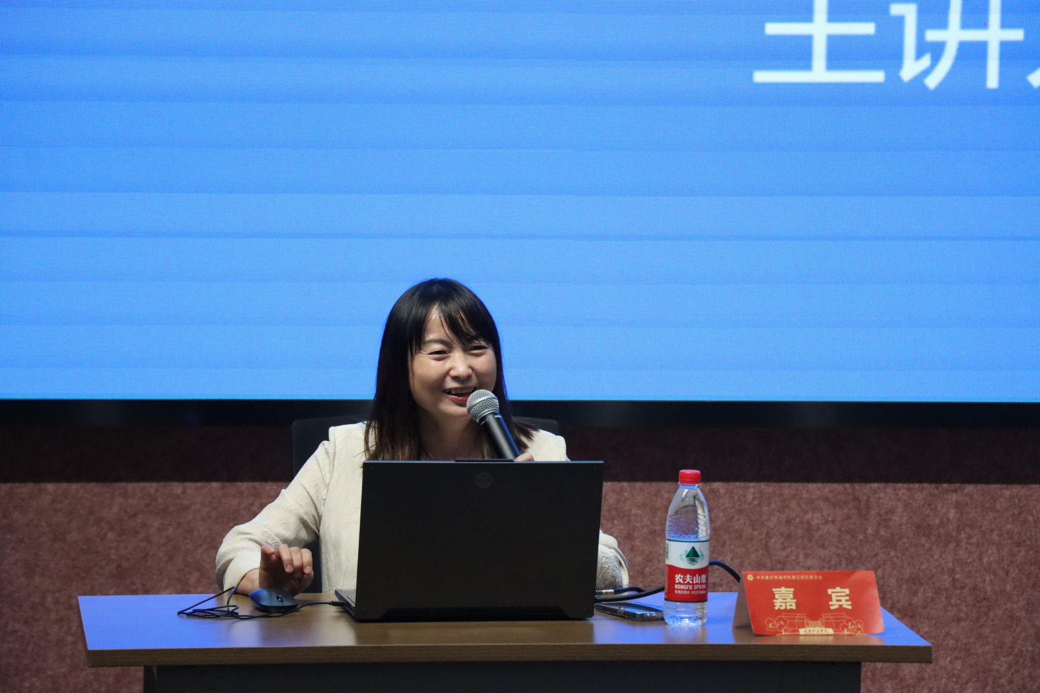 开班仪式结束后,华龙网集团首席记者佘振芳作理论课程第一讲。随着社会进步,人们获取信息的渠道日趋多样化,做好新闻宣传和舆论引导对于弘扬优良文化、传播正能量、推动社会和谐发展至关重要。而对学生骨干来说,这也是一项必备技能。佘振芳记者从一个个生动的新闻案例出发,围绕宣传应遵守的原则、宣传工作者应具备的素养、挖掘好新闻所需要的能力等角度,深入浅出地讲解了如何做一名新时代懂宣传的学生骨干,并与学员交流了宣传工作相关问题。
