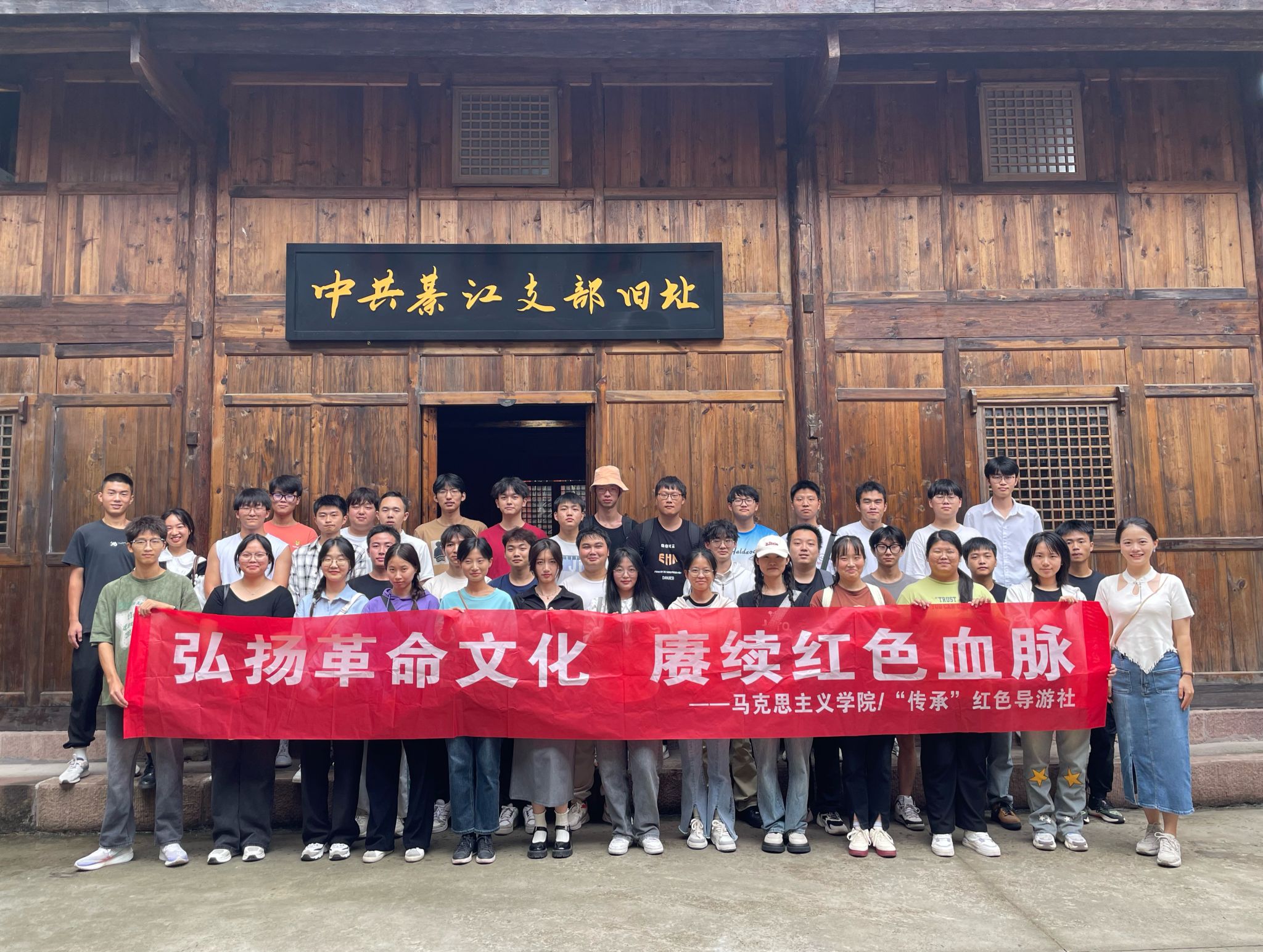 缅怀革命先烈,重温革命事迹,弘扬革命文化,赓续红色血脉。9月22日下午,我校綦江校区马克思主义学院与“传承”红色导游社共同组织了中共綦江支部旧址实践教学活动。此次活动由马克思主义学院形势与政策教研室邱秀谦、彭玉玲两位老师带队,“传承”红色导游社协同组织,何吉辉、马兴齐、罗欣等39位同学参与。