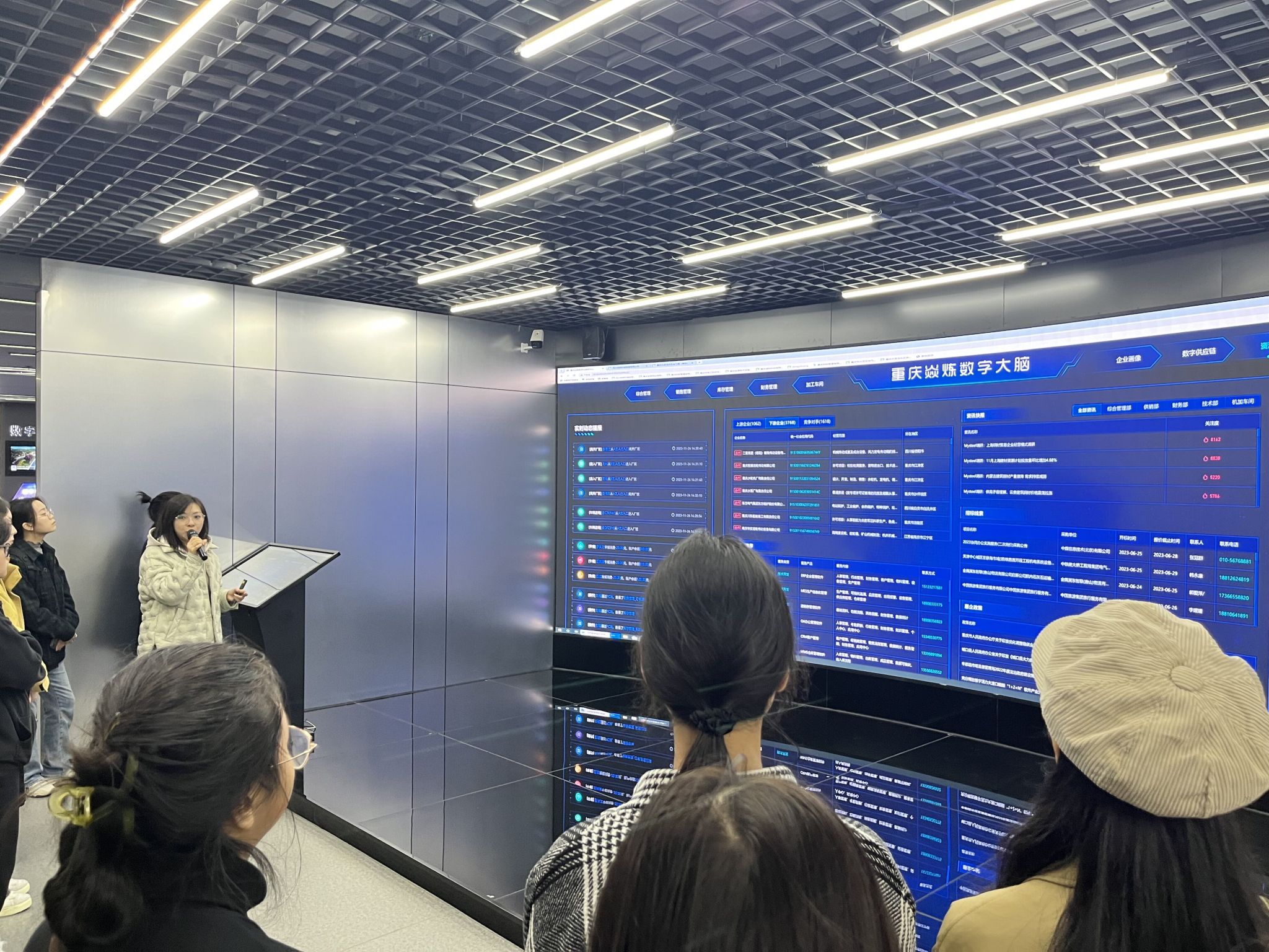 在企业指导老师的讲解和指引下,学生们也了解到重庆龙智造科技有限公司发展的八年历程。2015年探索“互联网+工业”融合模式,开启产业赋能与企业服务之路,建成全国最早一批工业互联网平台;2018年,迎来重庆市“智慧园区”建设大潮,成为全市工业园区服务平台的开拓者与进取者;到2023年,龙智造紧跟工信部数字化转型方针利用深厚的企业数字化转型升级经验,为中小企业的数字化转型赋能。