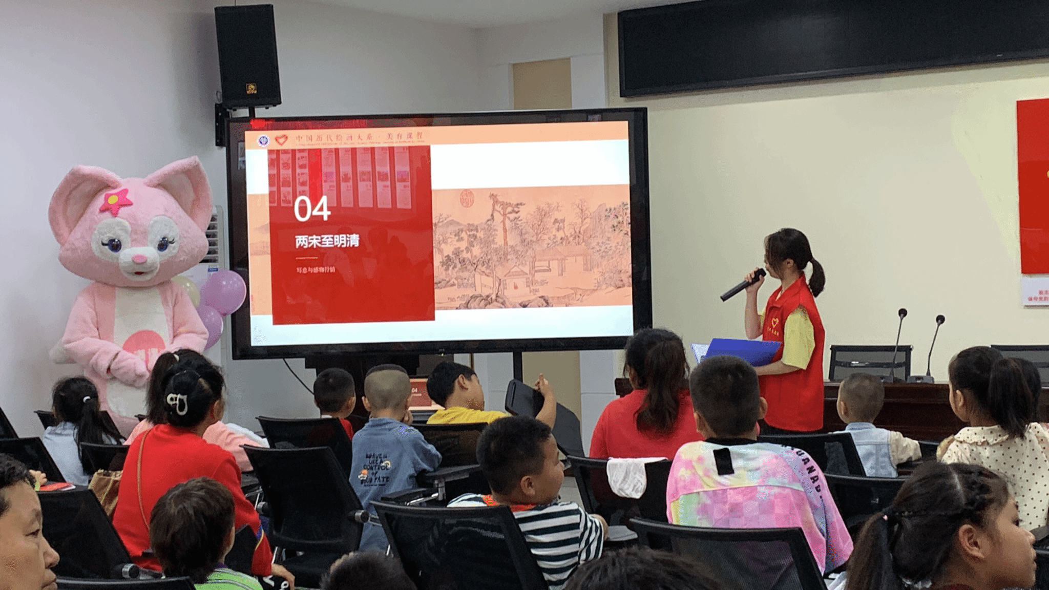 活动伊始,志愿者小老师带领孩子们走进绘画的殿堂。以深入浅出的方式,向孩子们介绍了中华文明突出特性的绘画表达。孩子们在轻松愉快的氛围中掌握到绘画的基础知识。