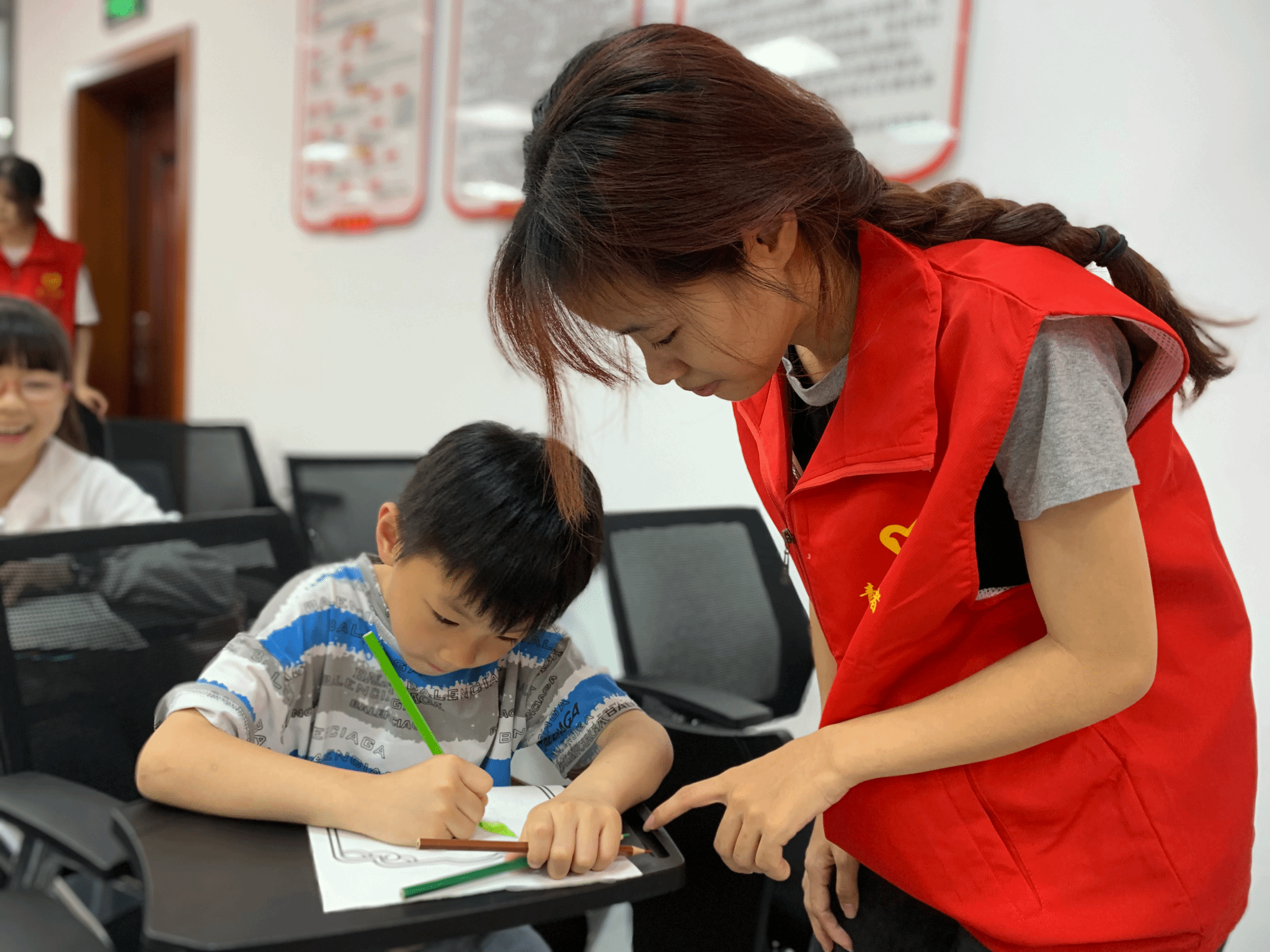 在绘画过程中,志愿者们不仅关注孩子们的绘画技巧,更注重培养他们的创造力和想象力,鼓励孩子们大胆尝试不同的色彩和线条组合,为他们提供个性化的指导和帮助。