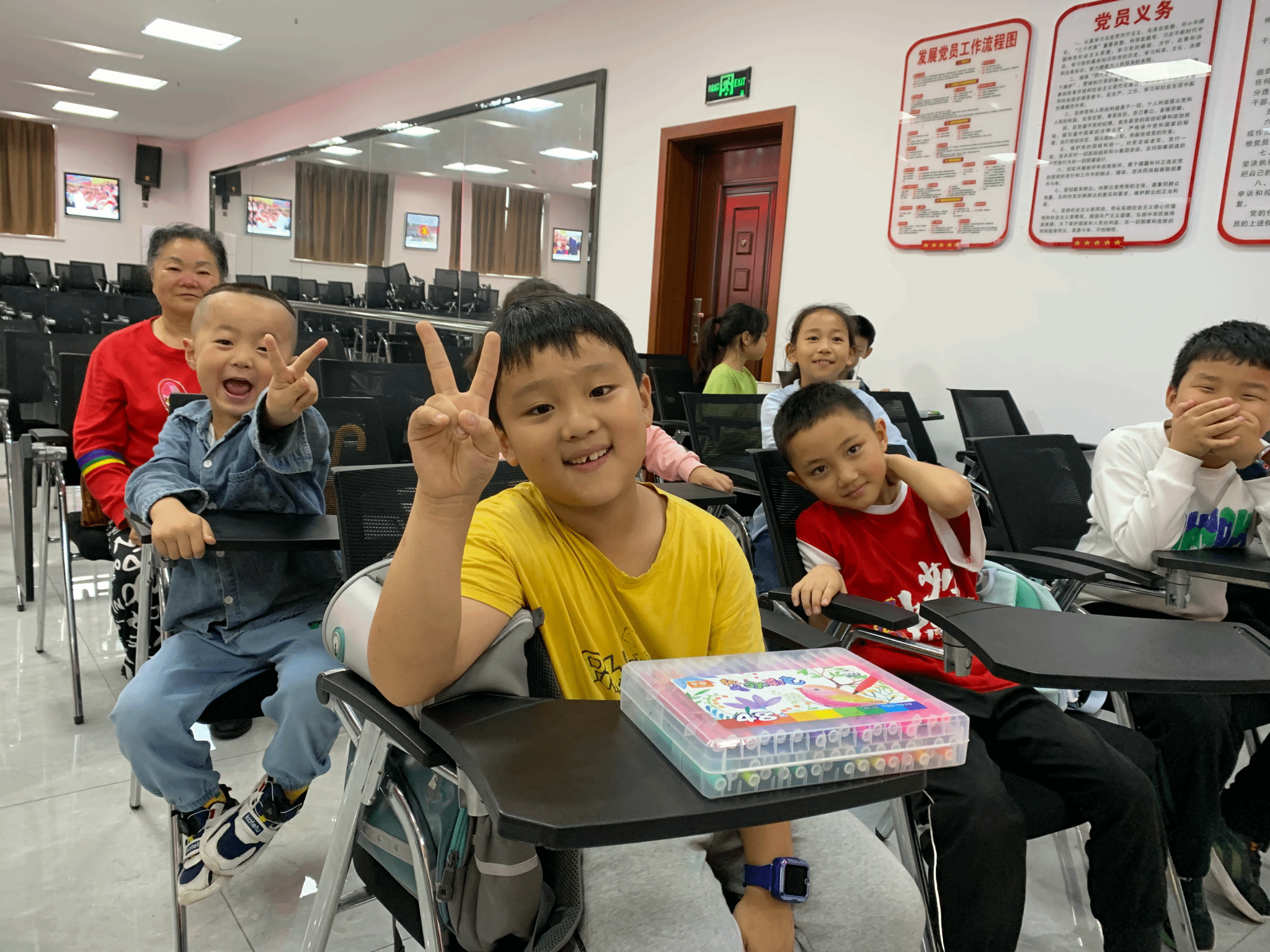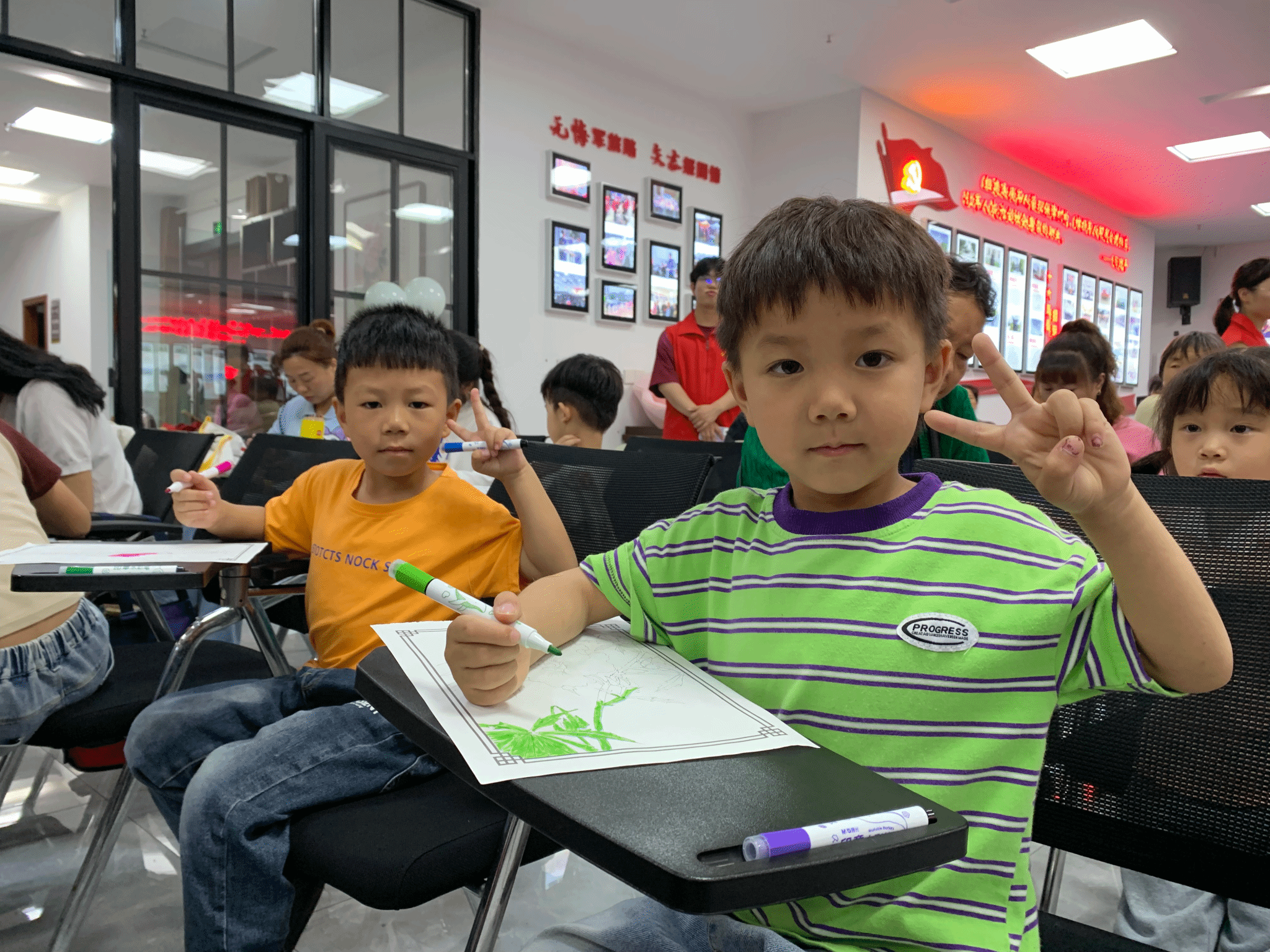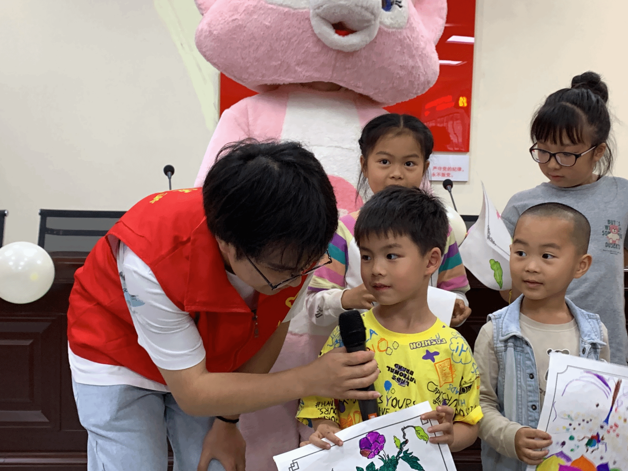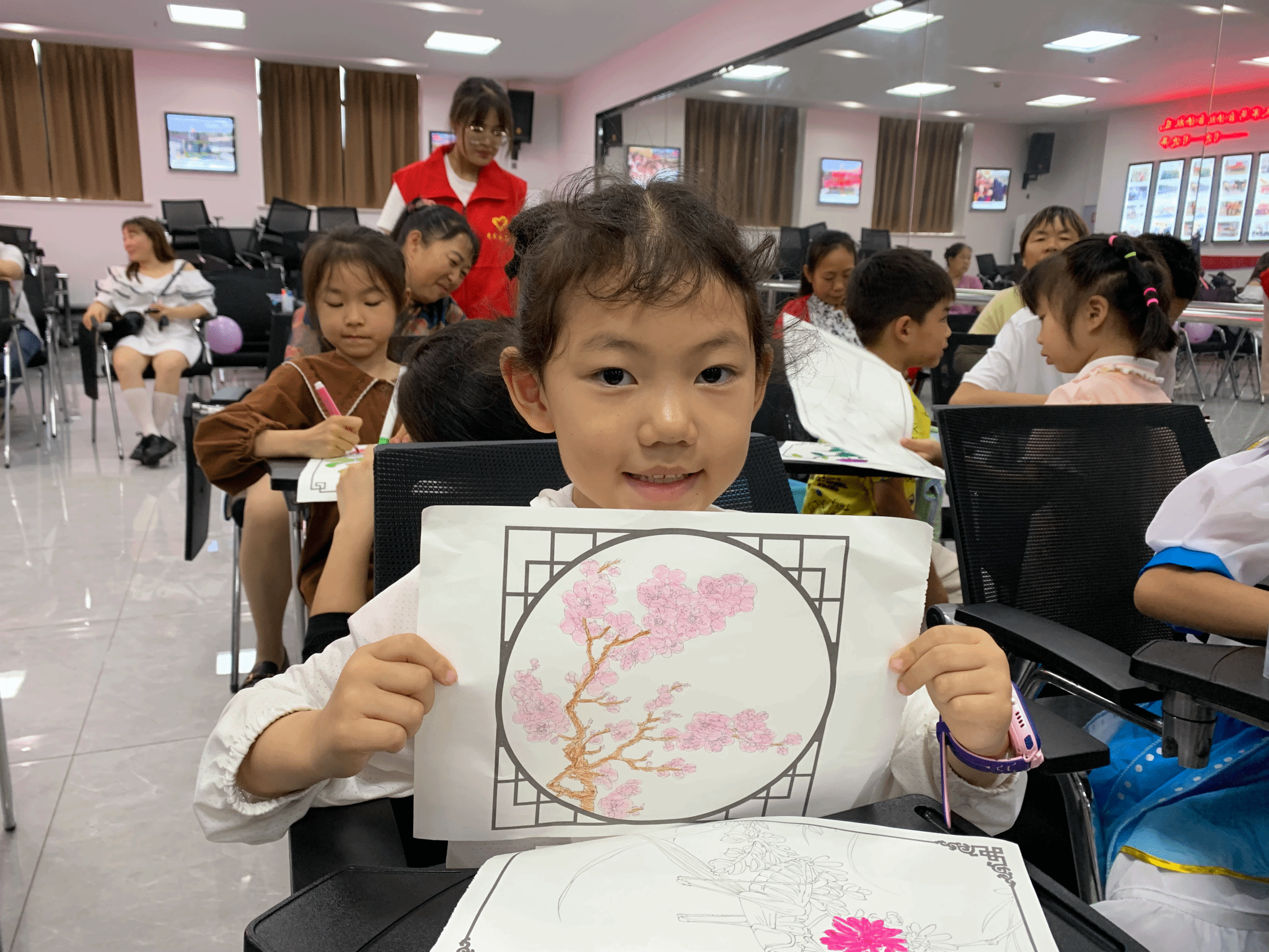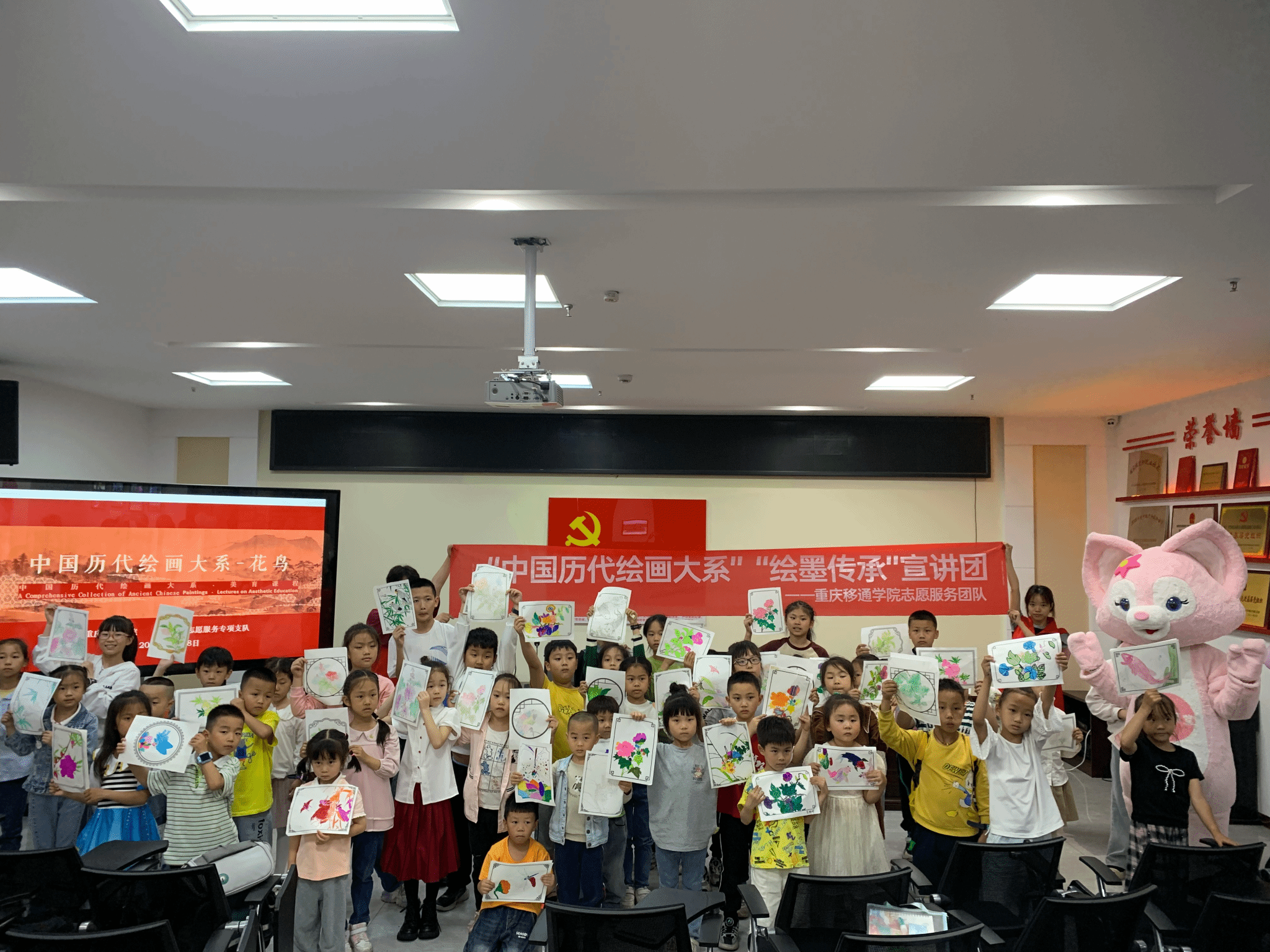 经过一个多小时的绘画实践,孩子们纷纷完成了自己的作品。他们的作品或清新可爱,或充满童趣,或富有创意,展现了孩子们丰富的内心世界和独特的艺术才华。志愿者纷纷为孩子们的作品点赞,并与他们一起合影留念,留下了美好的回忆。