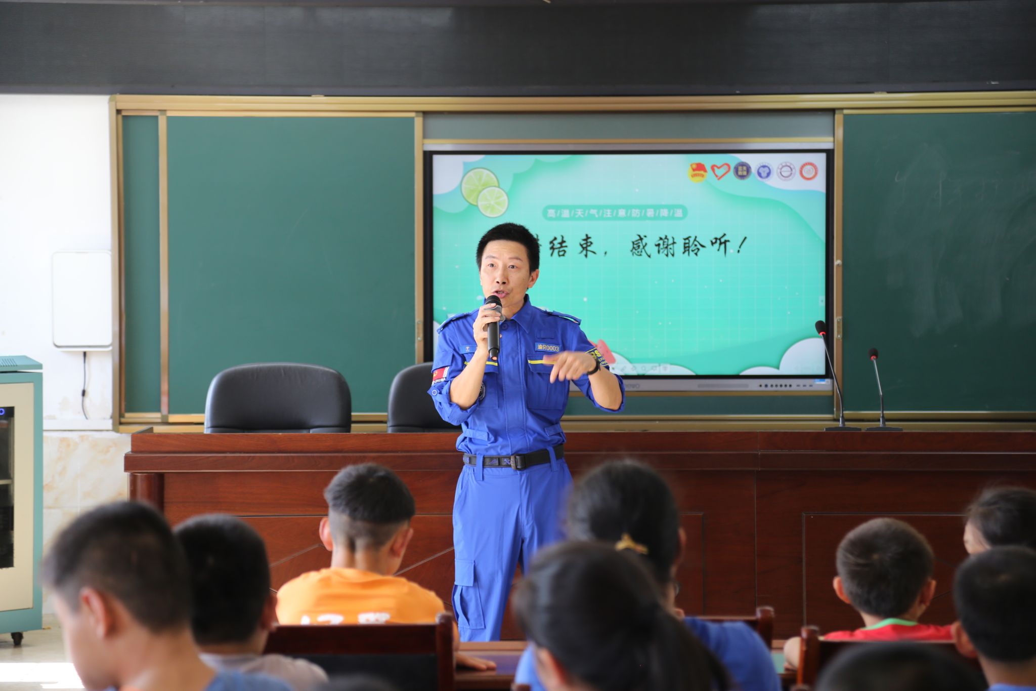 接着蓝天支队宣教组成员王小云用清晰明了的语言为小朋友们讲解了中暑的症状,预防中暑的方法以及中暑后该如何处理等问题。王小云还谈到,在高温天气下,要尽量避免长时间户外活动,尤其是小朋友们不清楚自身身体情况,要注意在户外运动时及时补充水分和盐分,穿着宽松透气的衣物,以防中暑。