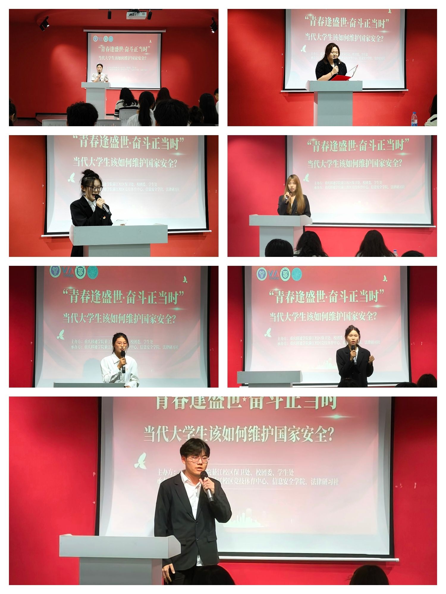 5月10日-5月25日期间举办了征文比赛、手抄报、演讲比赛多个活动。征文比赛是通过文字的力量,激发广大同学们的创意和才华,让移通学子更加深入地了解国家安全观的重要性。手抄报比赛结合了现代创意视频技术,让同学们更加深入地理解和认识国家安全观的重要性,激发了他们的创新思维和团队协作精神。 演讲比赛则是在热烈而庄重的氛围中参赛选手们围绕国家安全这一主题,结合时事热点展开了激烈的角逐。将国家安全知识融入生活中,让观众在思考中深刻认识到国家安全的重要性。