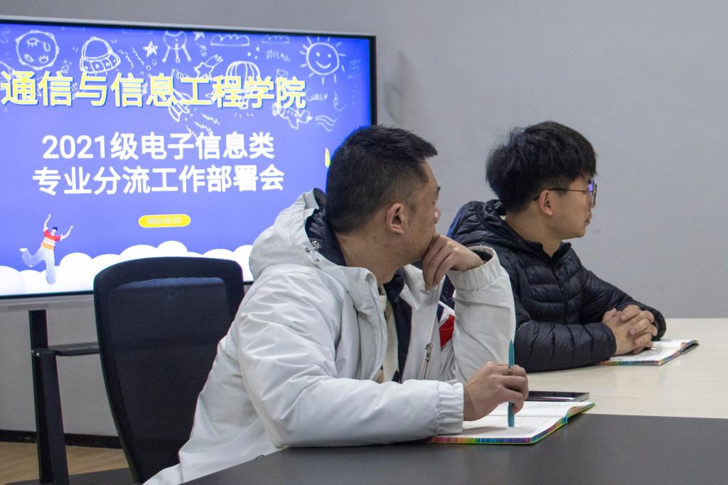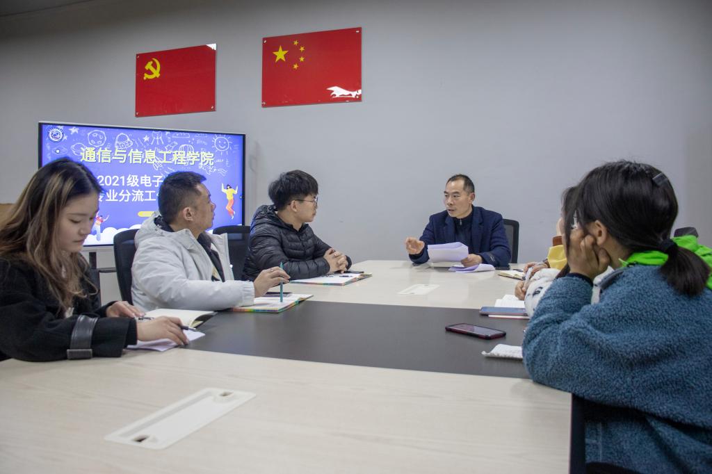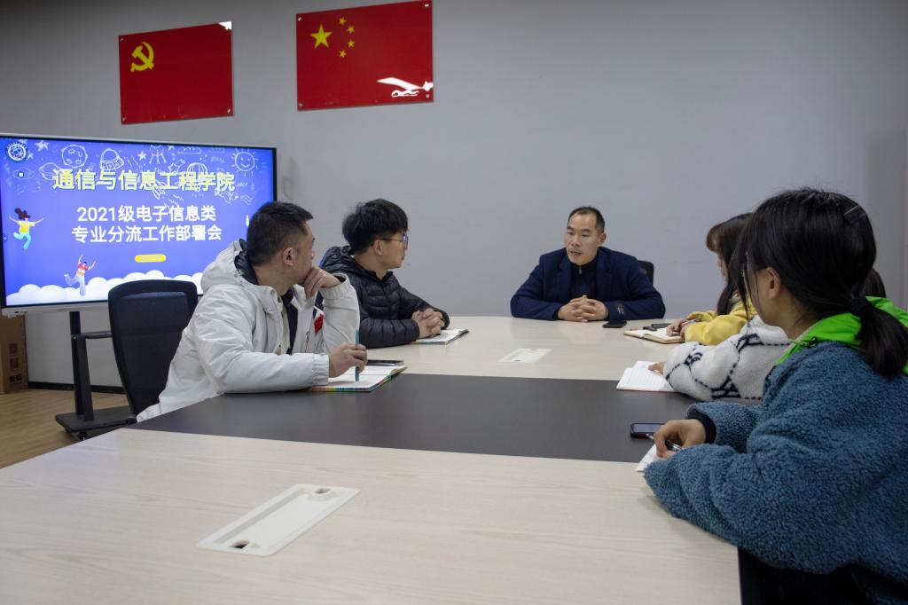 通信与信息工程学院2021级电子信息类本科生实行大类招生培养。为做好专业分流工作,保证大类培养与专业培养阶段的有机衔接,在去年大类分流动员大会的基础上,2023年2月23日,我院进行了专业分流工作推进会,会议由副院长王国树副教授主持,大二辅导员、教学秘书参与。