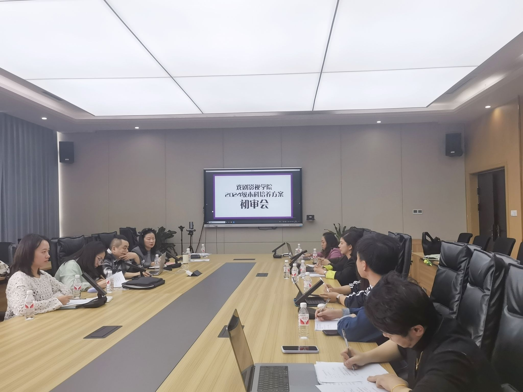 为进一步优化各专业人才培养方案,提升人才培养质量,以进一步推动专业建设工作与迎接合格评估工作顺利进行。戏剧影视学院于2024年10月15日,在图书馆414会议室联合校外专家开展2024级本科培养方案初审会。本次初审会邀请了重庆北美观照影视文化传媒有限公司副总经理冯抒、重庆隐豹数字传媒有限公司总经理邹涛、重庆朱颜笑文化传媒有限公司总经理张佳蓉,对戏剧影视文学、动画、电影制作、新媒体技术、戏剧影视美术设计五个专业的人才培养方案进行了多维论证,戏剧影视学院副院长王芳带领各教研室主任、各专业建设负责人参加了本次会议。