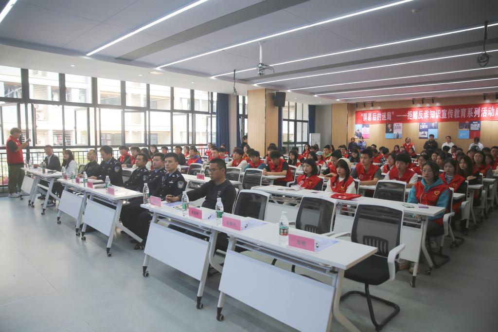 出席本次活动的嘉宾有:綦江区公安局合成作战支队支队长、綦江区反诈中心主任刘竞警官,綦江区公安局合成作战支队政委、綦江区反诈中心副主任叶乐警官,綦江区公安局通惠派出所副所长白朝露警官,重庆移通学院通信与信息工程学院副院长王国树教授、保卫处柴医保老师、通信与信息工程学院团总支书记田海燕老师,重庆外语外事学院吴秋枰老师、王奕丹老师以及徐艺丹老师,共计参与干警、师生300余人,累计参与人次2340余人次。