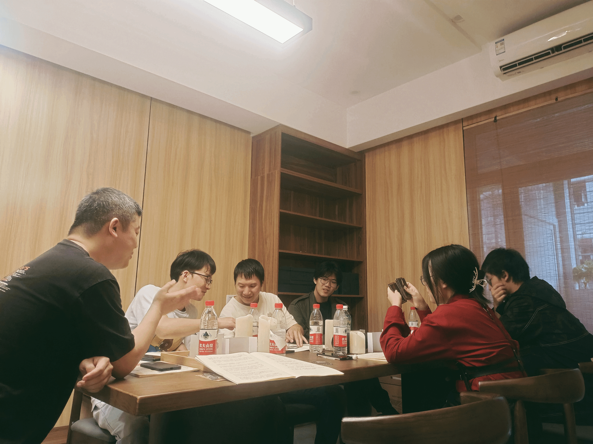 书籍是传承文明的载体,是人类进步的阶梯。可以说,“作家面对面”活动让同学们有了一次与作家零距离接触的机会,营造了浓厚的书香校园氛围,拓宽了眼界,开阔了视野,增长了学识,从而让文学滋润心田。之后马院长带领创意写作学院的老师和感兴趣的同学们开展了线下剧本杀活动,师生们在瀛溪2号书院进行了一场别开生面的剧本杀体验,马延哲院长精力旺盛,长达6小时的剧本杀,他一直都是精彩的主持,綦遇创意戏剧社社员们也积极配合、演绎,给了所有参与的老师和同学一次难忘的游戏体验。非常感谢马老师与我们分享关于《剧本杀的起源与核心》的独特观点和深入见解,也同样感谢所有工作人员的辛勤付出。