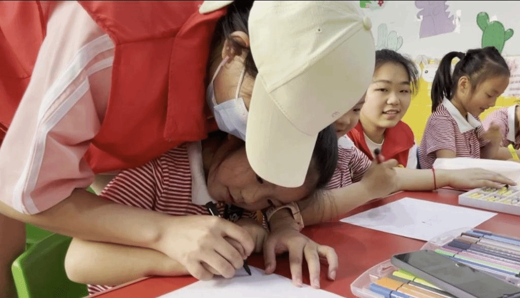 党风迹可寻,如清风慰我心。“党在我心中,是一群警察围着一面红旗”,在志愿者问出“党是什么样子的?”问题时,一个小女孩思索片刻答道。简单明了的话语,却让志愿者们内心深受触动,她们引导小朋友们画出心目中党的形象,增强小朋友们对党的理解,坚定党在小朋友们心中的形象。“她们对党的热爱与崇拜是藏不住的,她们教会我勇敢的表达对党和祖国的热爱!”天边的晚霞渐渐露出了笑脸,本次“童心向党·一起表白”520志愿服务专项活动也在志愿者和小朋友们甜蜜合影中接近尾声。