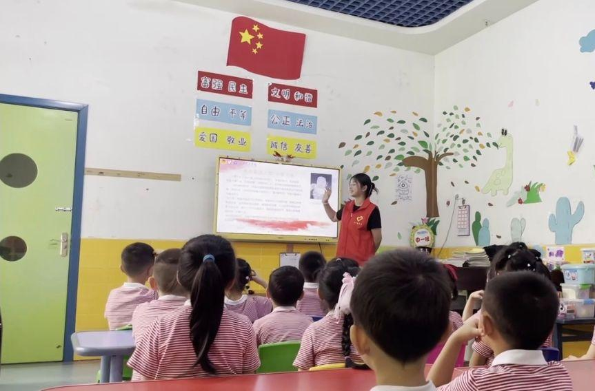 尽管下午的阳光很刺眼,但志愿者们依旧热情饱满,有序准备着活动所需物资,提前抵达了红缨幼儿园。活动开始前,志愿者们都略显紧张,担心带动不了课堂上的氛围,害怕活动环节进展得不顺利。然而以上顾虑完全是多余的,课堂上小朋友们热情四溢,与志愿者们积极互动。在志愿者们做自我介绍的时,小朋友们洪亮且齐声称呼,同时纷纷高举双手告诉志愿者他们的名字,稚嫩童音深入每个志愿者的心灵。“共产党像太阳,照得大地多辉煌......”音乐是灵动的语言、多彩的图画、人生的旋律。志愿者们带领着小孩子们一字一句的歌唱,教习的同时也详细的跟小朋友解释了歌词的内涵,帮助其更好的树立爱党爱国之心。小朋友们用灵动的童声唱响《童心向党》,悠扬的歌声放飞着小朋友们欢乐的童心,让他们的童年在今年的初夏更添几分色彩,也让志愿者们在这个特殊的520中获得许多欢乐。