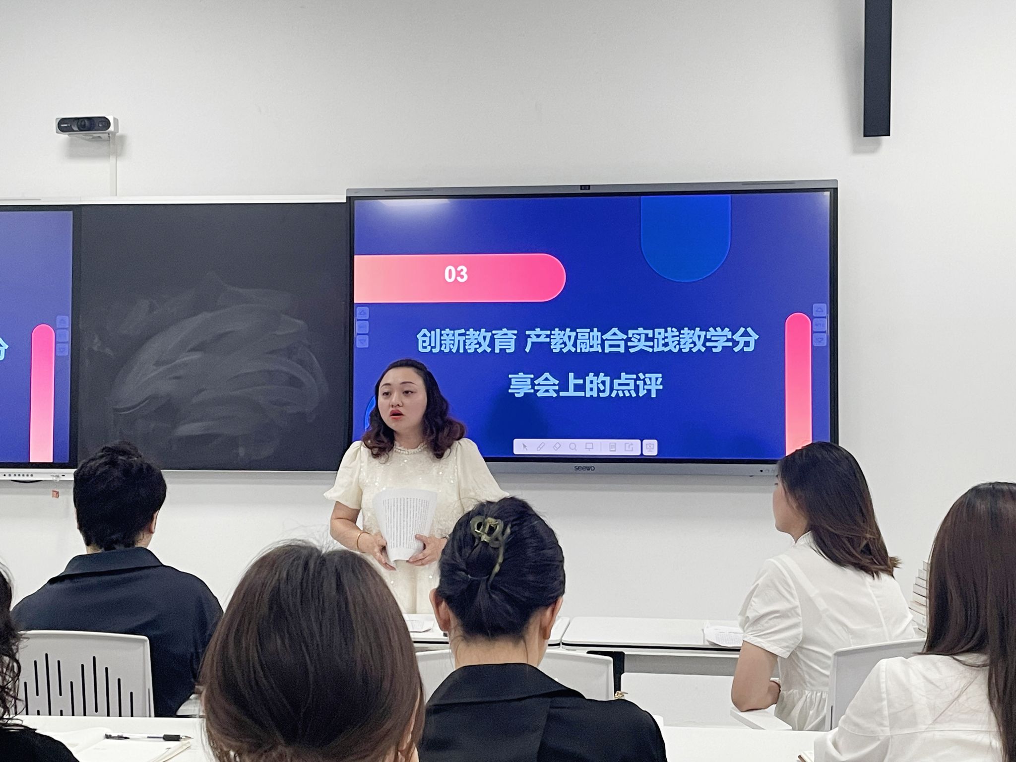 综合艺术教研室主任袁梦茹针对彭董事长在创新教育、产教融合实践教学分享会上的点评进行了全面的总结。她指出,彭董事长深刻洞察了目前教育存在的问题,如大学教育缺乏课堂创新性、校企互动性、知识储备阅读量不足等。针对这些问题,袁主任提出了具体的教学改革建议,包括引导师生积极阅读、进行教学创新等。她特别强调产教融合、实践教学的重要性,并呼吁教师们加强与企业合作,推动校企合作、产教融合,为学生提供更多的实践机会和就业渠道。