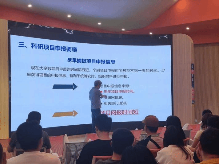 李教授首先向在座教师介绍了科研项目的意义和作用,强调了科研项目对于响应国家科技创新、推动学校人才培养、利于教师个人发展三个层面的重要性。随后其详细解读了科研项目申报的流程和要求,包括立项依据、选题规范、研究设计、工作基础和条件评估、预期成果估算等内容,李教授结合自身丰富的科研项目评审与申请经验,为教师提供了实用的操作指导。