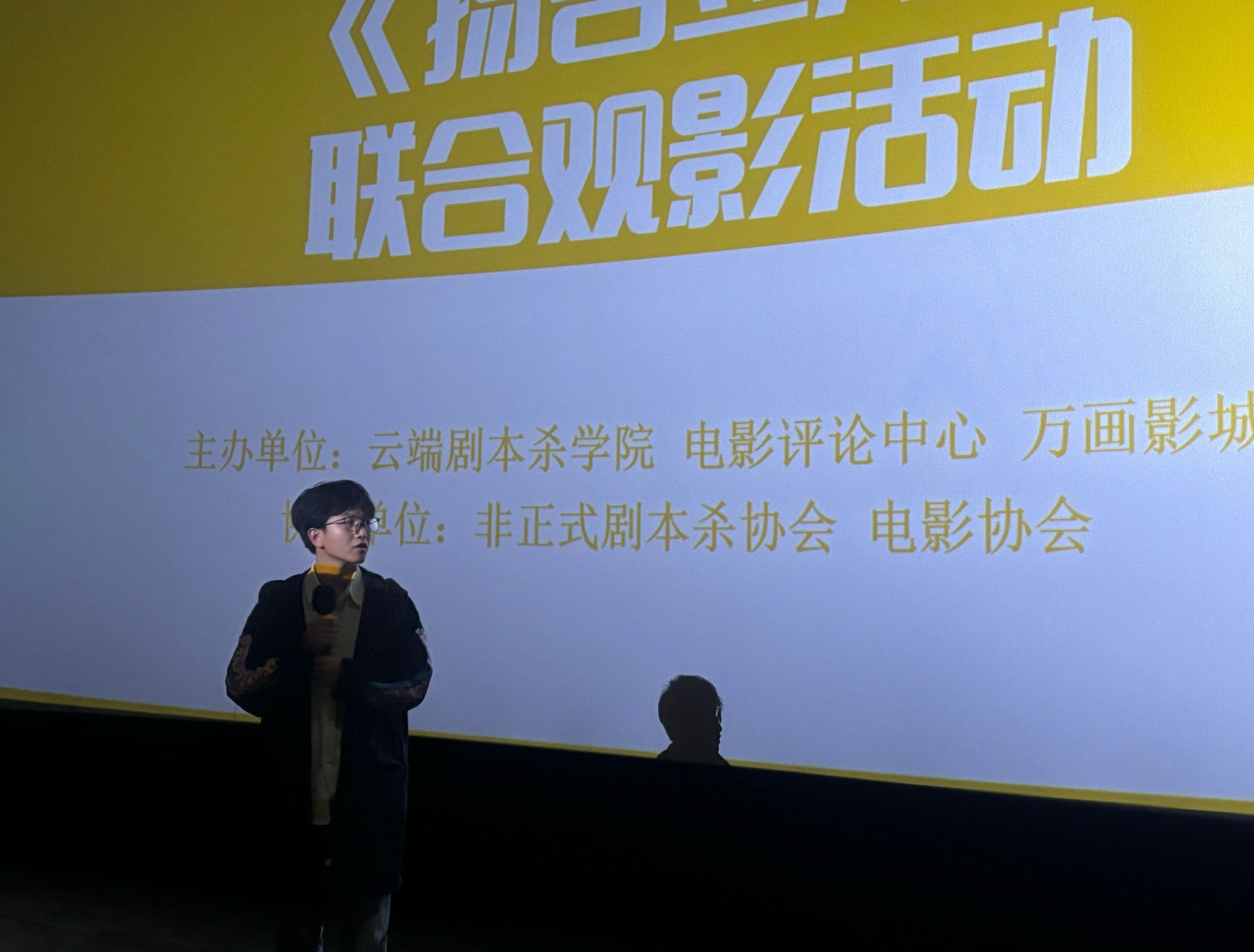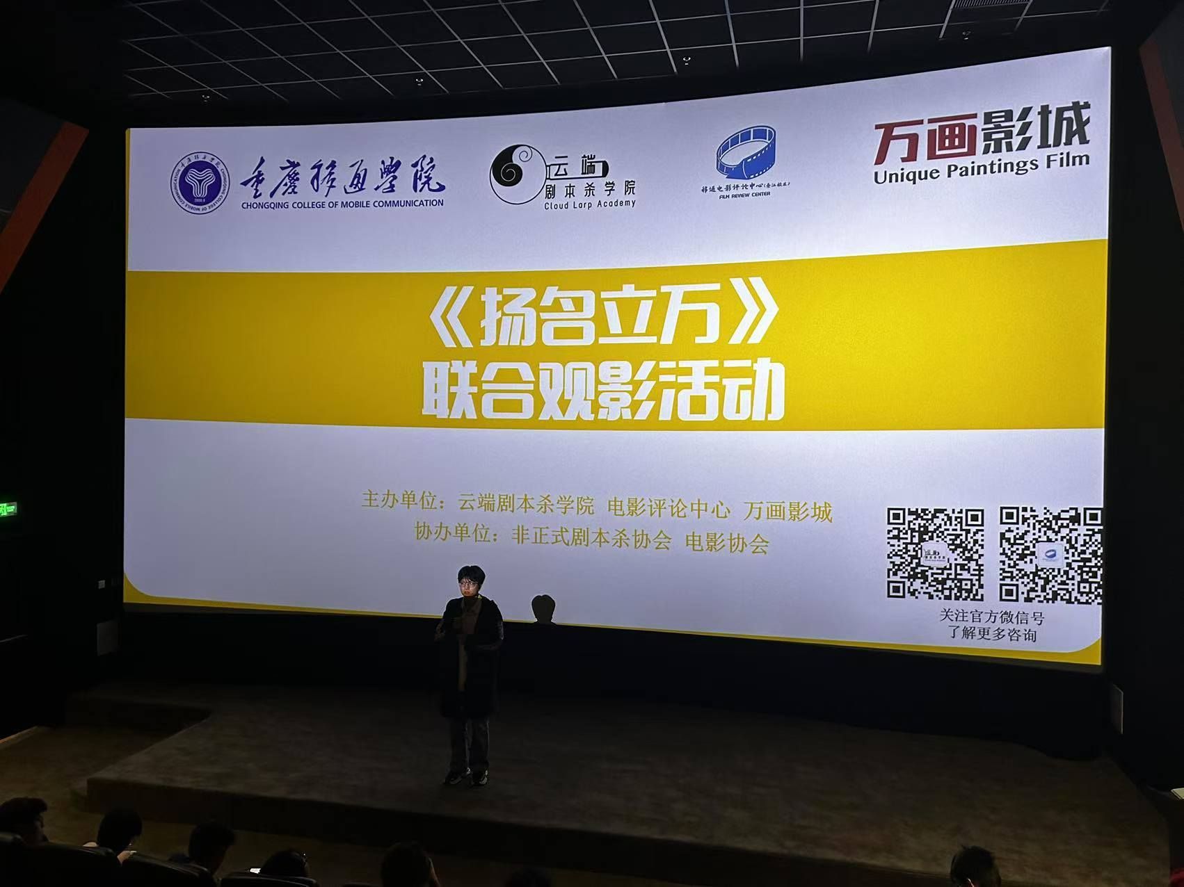 2024年11月13日,由云端剧本杀学院与电影评论中心精心策划,非正式剧本杀协会与电影协会热情助阵的第1期“剧本杀电影”联合观影活动——《扬名立万》,在学校万画影城成功举办。