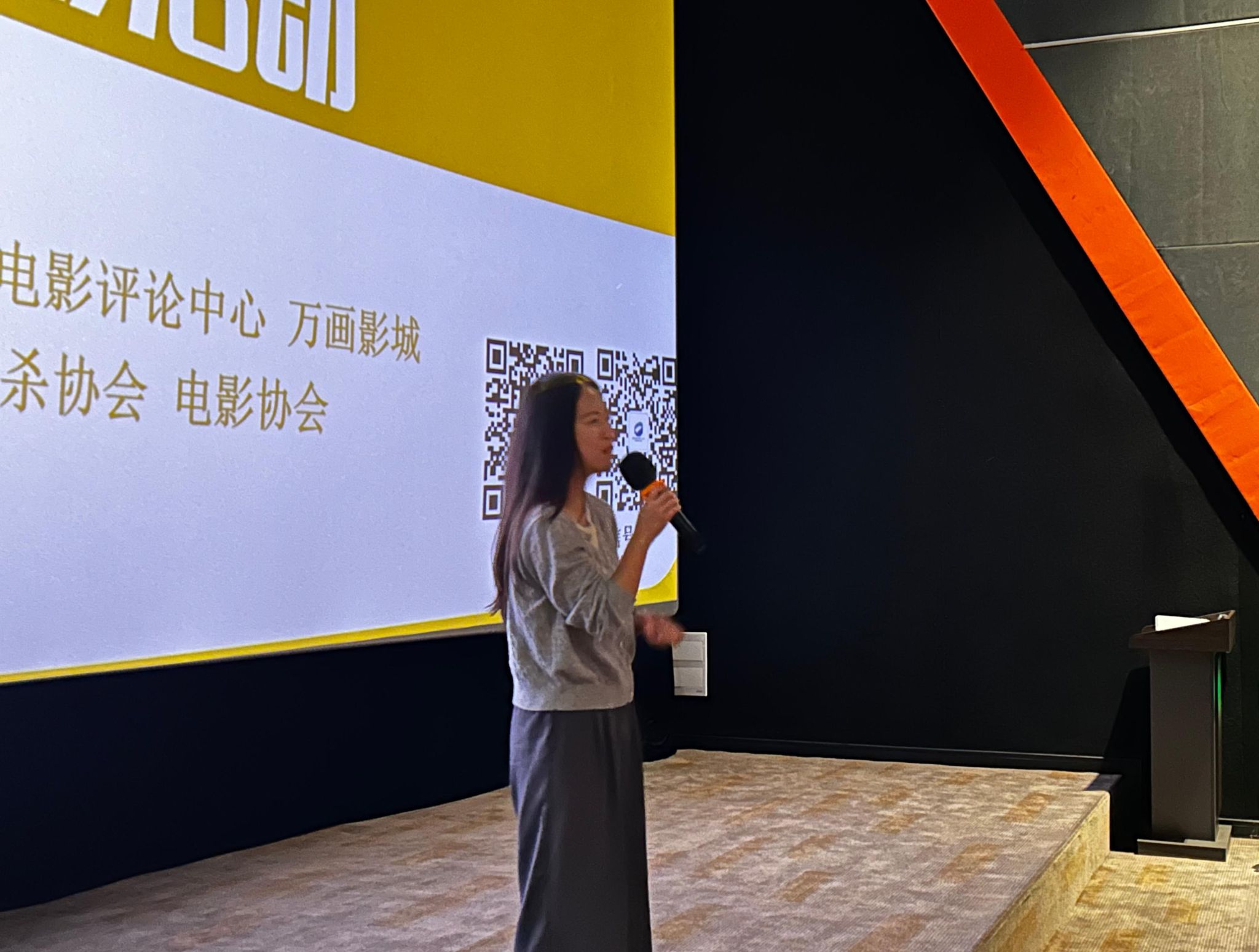 观影结束后,电影评论中心的张正钰老师对影片进行了详细讲解:“《扬名立万》是一部在叙事上极具创新的佳作。它巧妙地把电影的艺术表达和‘剧本杀’的趣味性融合在一起,打破了传统电影叙事的边界。从电影人视角切入,将真实与虚构交织,在故事层面就已经足够精彩。这种独特的叙事结构让观众有了强烈的代入感,仿佛自己也置身于这场惊心动魄的剧本杀之中。而且,影片在展现人物理想与现实的冲突时非常细腻,成功地塑造出了有血有肉的人物形象,让观众能够深刻感受到人性的复杂,这是电影在艺术层面的成功之处。”