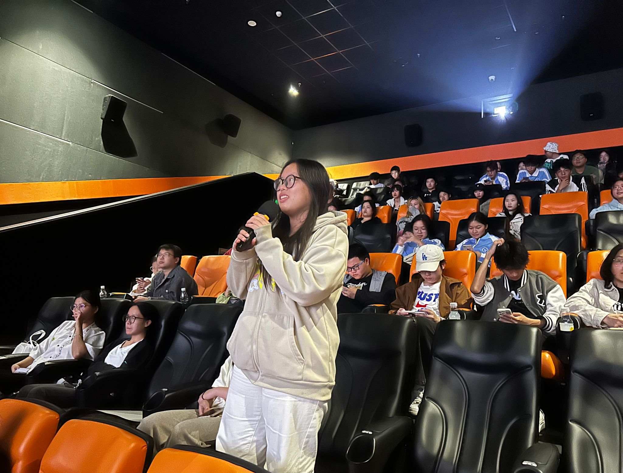 活动伊始,同学们有序排队入场,眼中满是期待。入座后,灯光渐暗,电影开始放映。影片中,主角们踏入神秘宅邸,阴森氛围借助音效和画面迅速蔓延。剧情推进,激烈冲突戏上演,刀剑相交声和角色表情紧紧抓住同学们的注意力,现场十分安静。而当惊人反转出现时,先是短暂寂静,随后是同学们的低呼。
