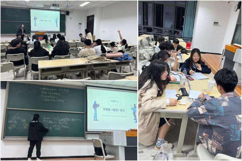 在同学们热火朝天的讨论中,越来越多的同学提出了自己的观点,也有更多的问题相继出现,这些问题使得作者思考了很多,修改了很多,也帮助了她很多,我想这就是创作的魅力,大家一起讨论,思想的碰撞就在此刻。在这样轻松的课堂氛围下,大家收获了很多,可快乐的时光如此短暂,很快到了下课时间,同学们不舍地整理着课桌,韦爱莲同学也在此刻放出了一首《时间都去哪了》,伴随着音乐,好像还回味着课上的点点滴滴。