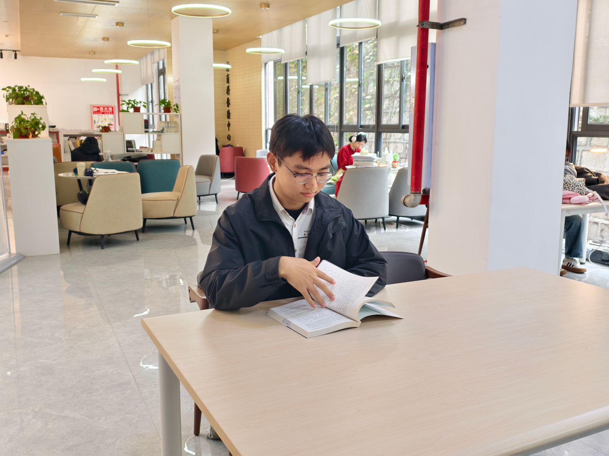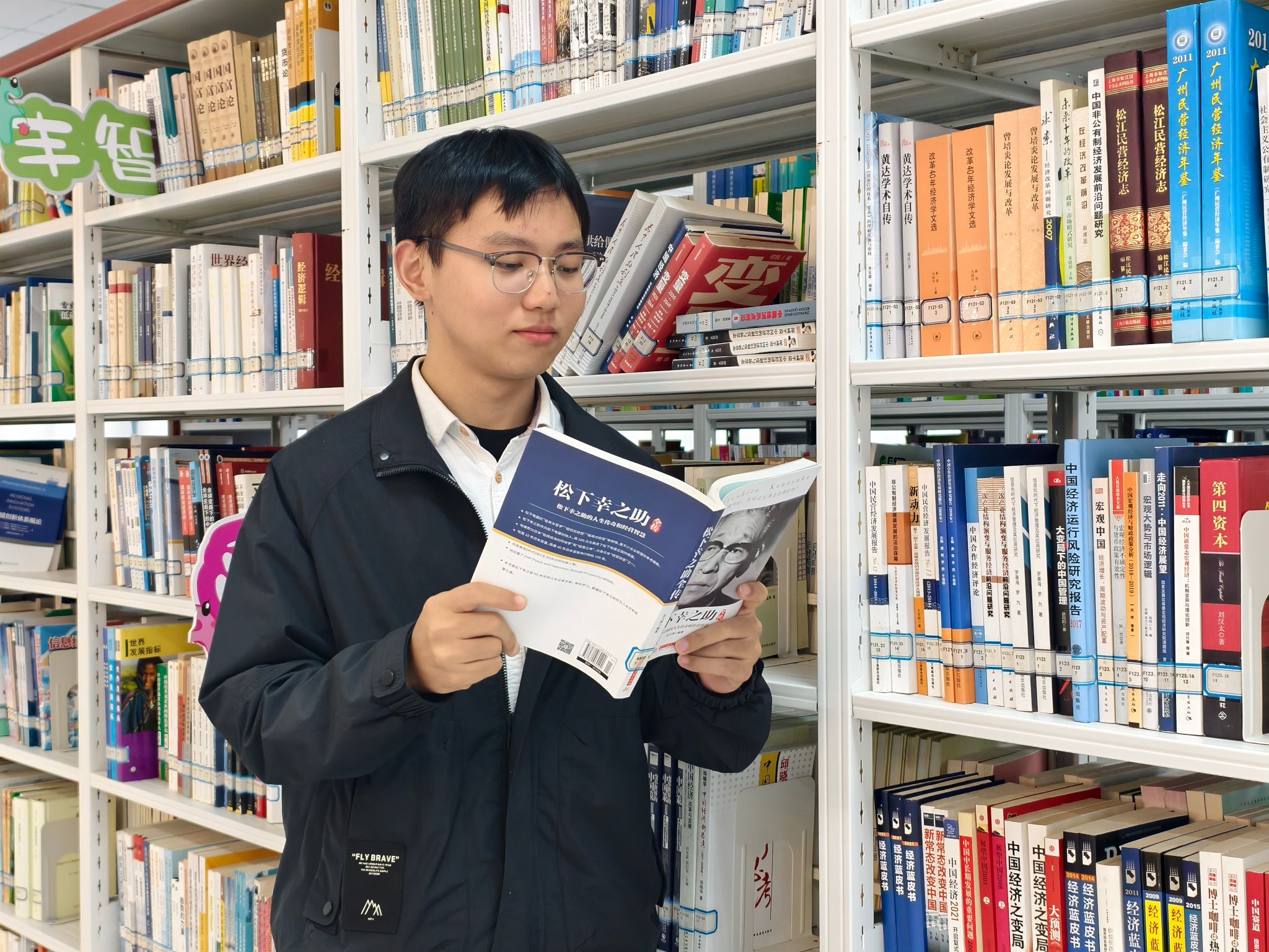 作为图管会(图书馆学生管理委员会)的一员,他对阅读有着更为深刻的体验和感悟。从最初对课外读物的好奇探索,到如今对经济管理、历史人文等多领域书籍的深入研读,张洪彬的阅读之旅越走越宽广。面对数字化阅读的冲击,他依然坚守纸质书香的初心。他坦言:“纸质书籍在阅读时更能让我保持专注,那种实体化的阅读体验是电子书无法替代的。”