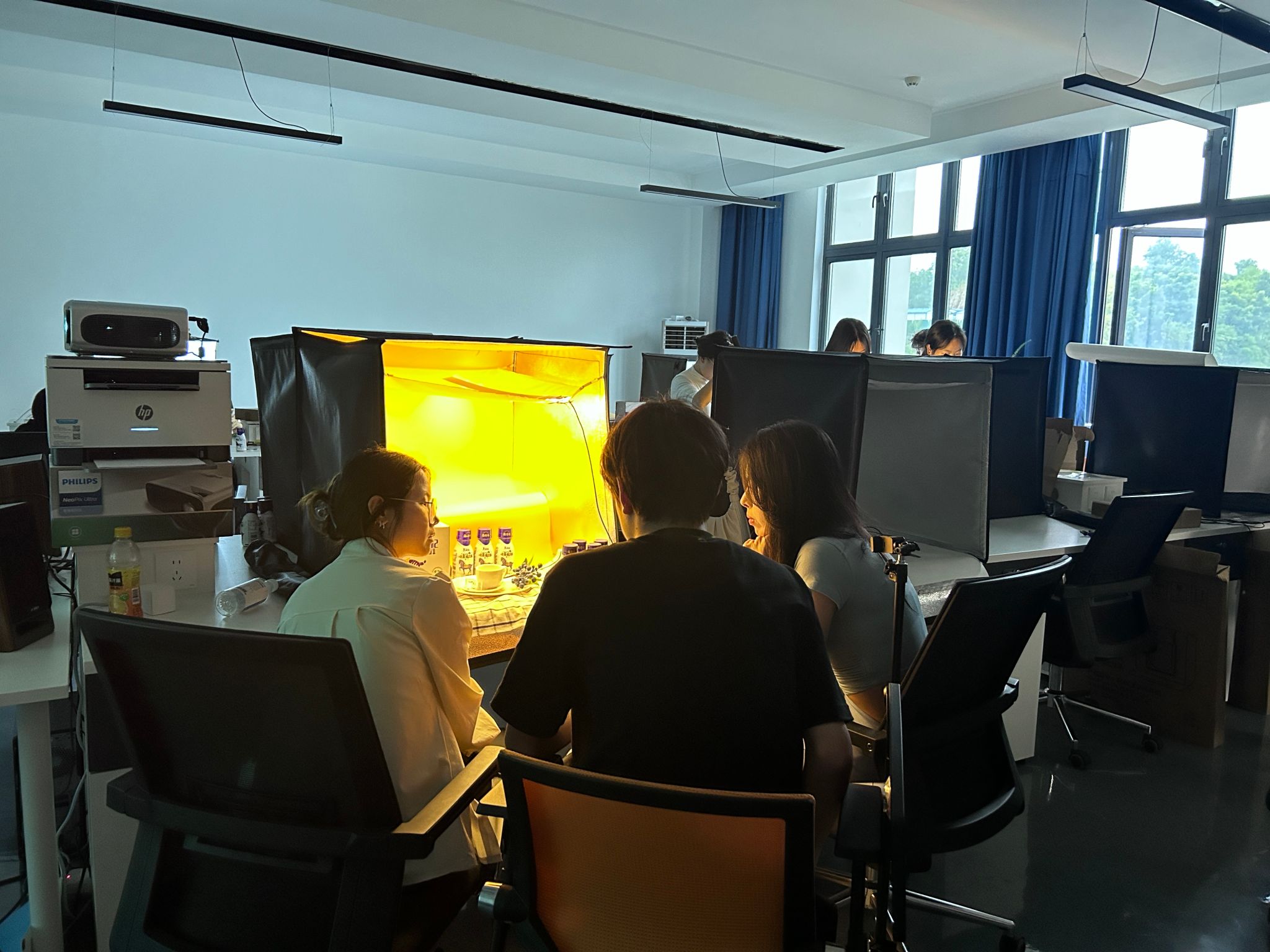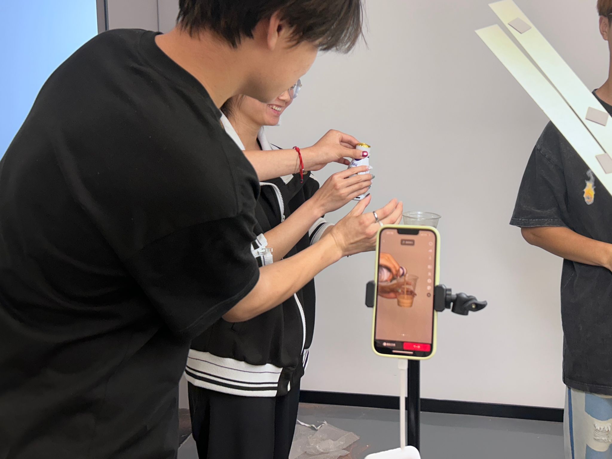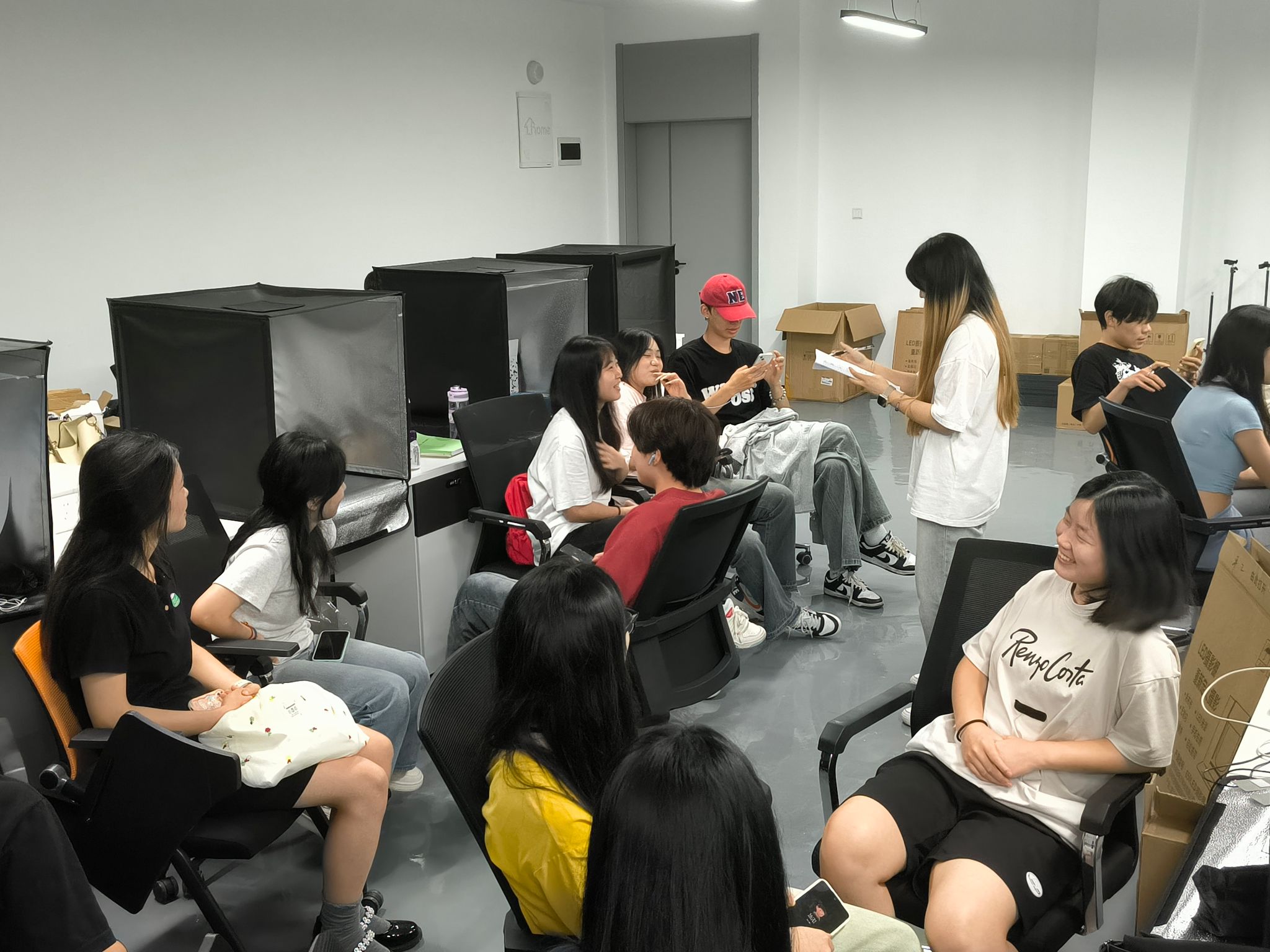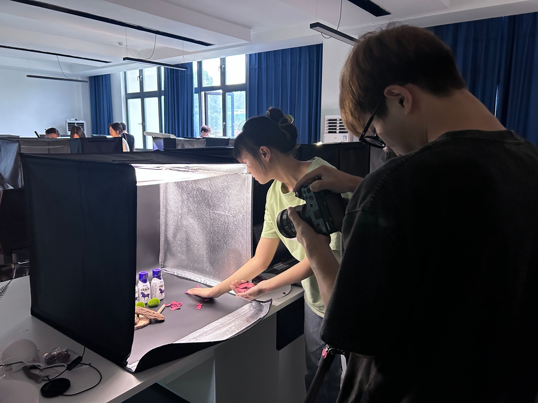 随后,学生们开始了紧张而有序的实训操作。他们根据分组,围绕选定的产品,开始自主进行文案的撰写、拍摄计划的制定以及后期剪辑的准备工作。课堂上,学生们或热烈讨论,或埋头苦干,每个人都投入到了创作的热情中。