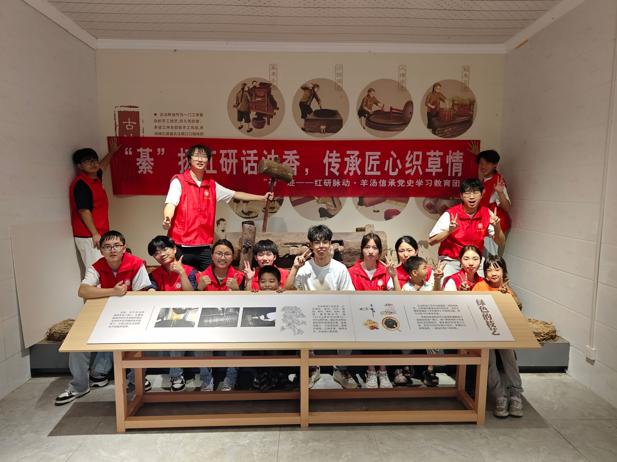 在“綦”迹——红研脉动·羊汤信承党史学习教育团圆满结束大垭口重走长征路的深刻体验后,我们的脚步并未停歇,而是将这份对红色文化的热爱与传承,化作更加广泛的社会实践行动。2024年7月8日,阳光正好,团队携手一群满怀童真与好奇心的儿童,踏上了一场别开生面的科普探秘之旅——走进羊角村,这里不仅是菜籽油加工厂的所在地,更是红军长征途中留下深刻印记的红色沃土。