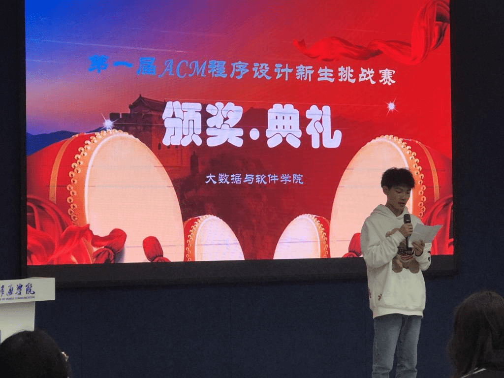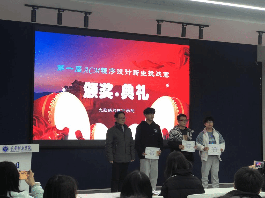 11月17日晚7点,重庆移通学院綦江校区“第一届 ACM程序设计新生挑战赛颁奖典礼”在綦河书院2号楼顺利举行,大数据与软件学院副院长林泽金、学工负责人阙小梅、全体学院教师、辅导员以及部分学生代表参加,本次颁奖典礼由汤鑫老师主持,为在第一届 ACM程序设计新生挑战赛中获奖的学子们颁奖。