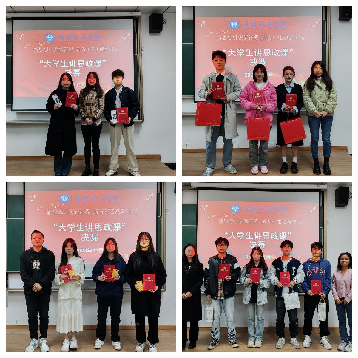 为深化思政课改革创新,推进“大思政课”建设,拓展大学生参与思政课实践教学途径,用新时代十年伟大变革的生动实践把道理讲深、讲透、讲活,不断提高思政课的针对性和吸引力,重庆移通学院马克思主义学院(綦江校区)举行以“新思想引领新征程、新青年建功新时代”为主题的大学生讲思政课比赛。在陈沛珊、杨丽娟两位老师的组织下,大学生讲思政课比赛决赛于11月29日下午在仁者楼314顺利举行。本次比赛邀请马克思主义学院程辉、陈安鹏、郝月霜、叶合柳、张思璐、樊高萌教师担任评委,学生代表全程观摩比赛。