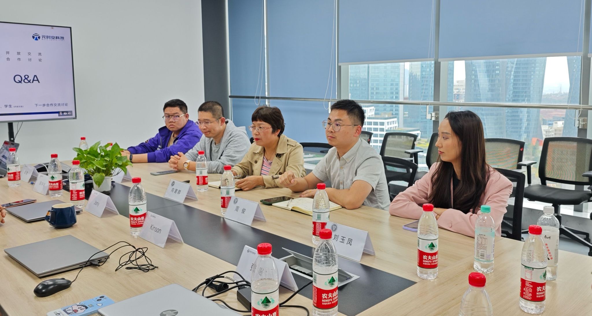 元时空智能科技(重庆)有限公司出席会议的有总经理高桥,影像总监唐金成,人力资源总监邓中达,人力资源经理谭锋。首先,总经理高桥对老师以及学生们的到来表示热烈欢迎并对公司进行了介绍。元时空智能科技(重庆)有限公司成立于2021年,注重软件开发、AI数据、影像开发、一站式开发解读,通过公司简介、文化理念、主营业务、人才培养等方面向老师、同学们详尽介绍了公司。同时,元时空影像总监唐金成就联合培养内容以及影像开发进行讨论,唐总表示,现目前影像技术开发是公司发展的重点,因此组建一支系统性、专业性的技术团队十分重要。