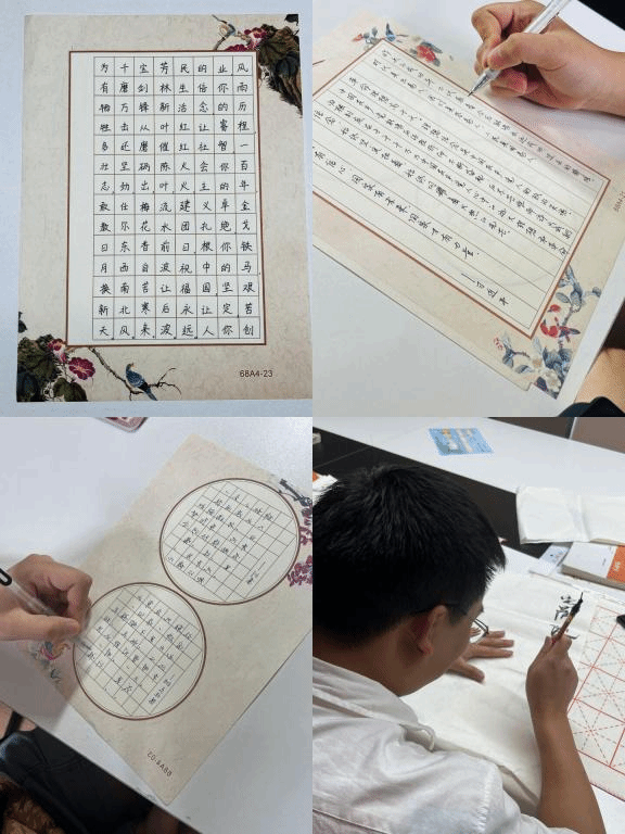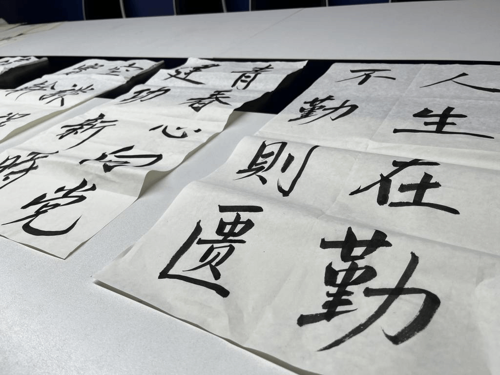 另一边书画社的同学们也在以书法的艺术形式,以百句名言作为书写内容回顾百年党史,同学们分别用自己擅长的硬笔或者软笔来书写出自己心中的情感、抑扬顿挫、收笔出峰等等,大家都凝神静气,书法的美在于字体美、结构美、章法美、内容美、意境美......一幅书法作品能体现书写者的性格,意志。“青春心向党,建功新时代”,一撇一捺写下的是同学们对于党,对于国家最诚挚的祝愿和希望。
