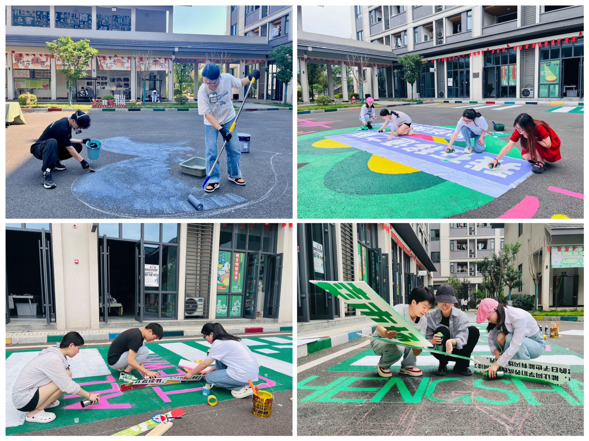 鲜花邮局寄来春日的美好,绘出五彩斑斓的画卷。为培养书院学子的塑造力和动手能力,横山书院依托“环境育人”的理念,于4月8日-5月7日,通过对书院中庭地面彩绘,带领百余位书院学子进行了为期一个月的创意改造。结合横山书院“UP社区”标识、地标打卡图案等内容,重塑和焕新书院空间,将书院文化融入学子们的日常生活场所,为书院家园阵地增添色彩。