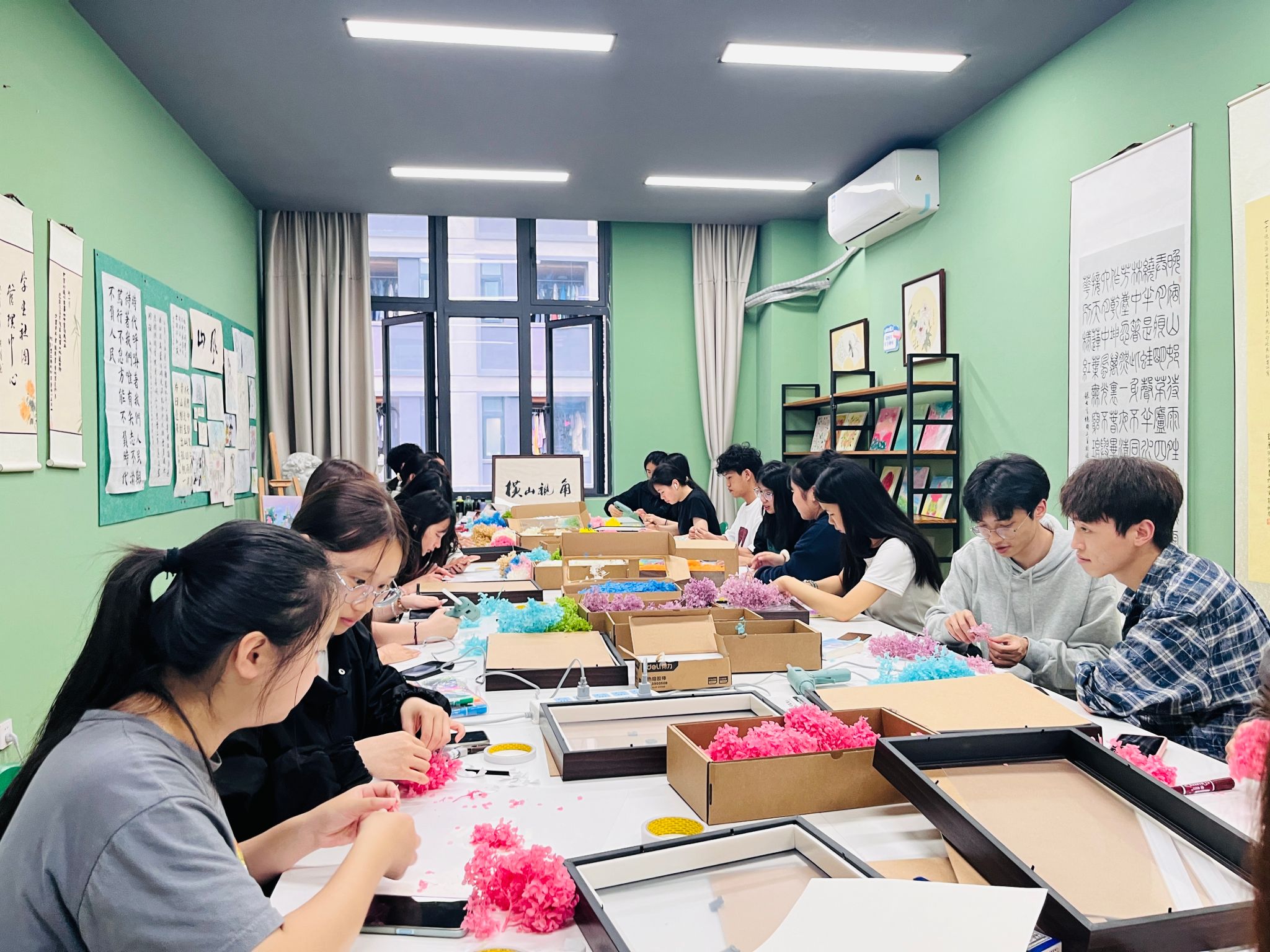 为引导同学们捕捉春日色彩,传递书院生活记忆,横山书院结合通书达礼的家风家训,以春生万物为契机,4月24日16:00,开展以“春朝花约”为主题的立体画框DIY活动。在活动过程中,同学们利用横山晚樱、紫色香兰干花等物品,以花交友,共创出独具特色的春日专属立体画框作品,为春日限定版浪漫横山坪定格自然,框住盛放的热烈与美好。