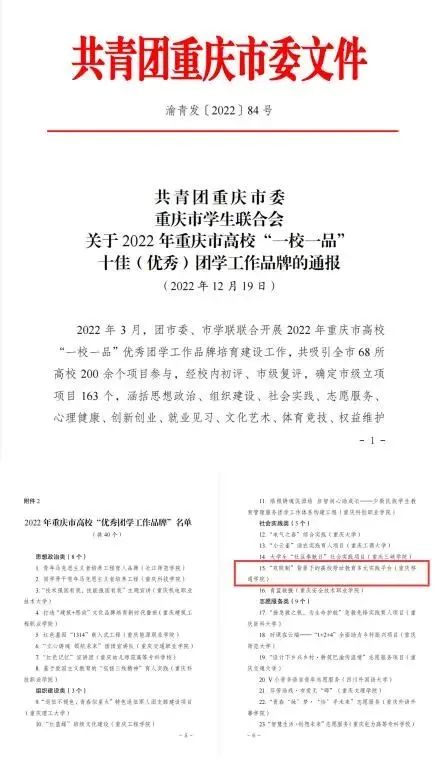 2021年我校“书院日”系列活动入选重庆市“一校一品”十佳团学品牌。
