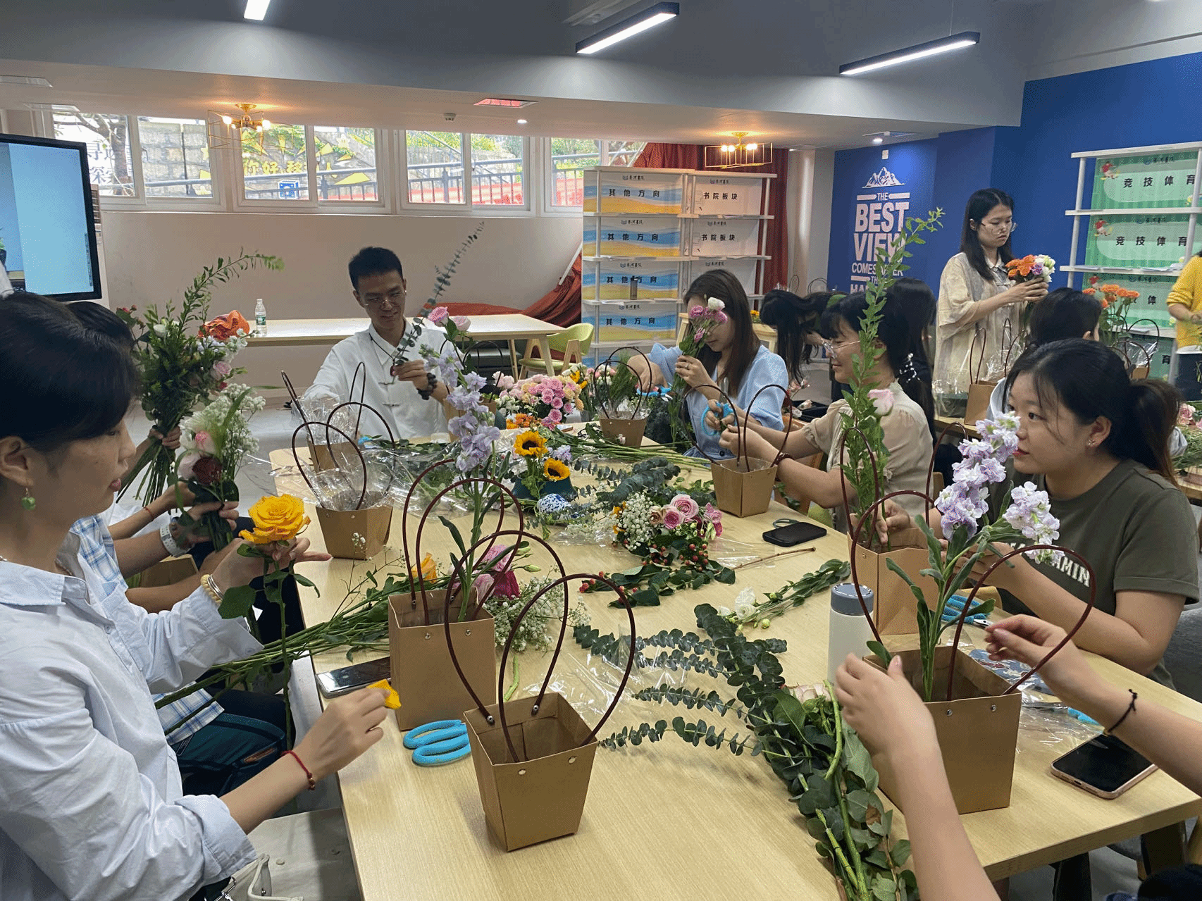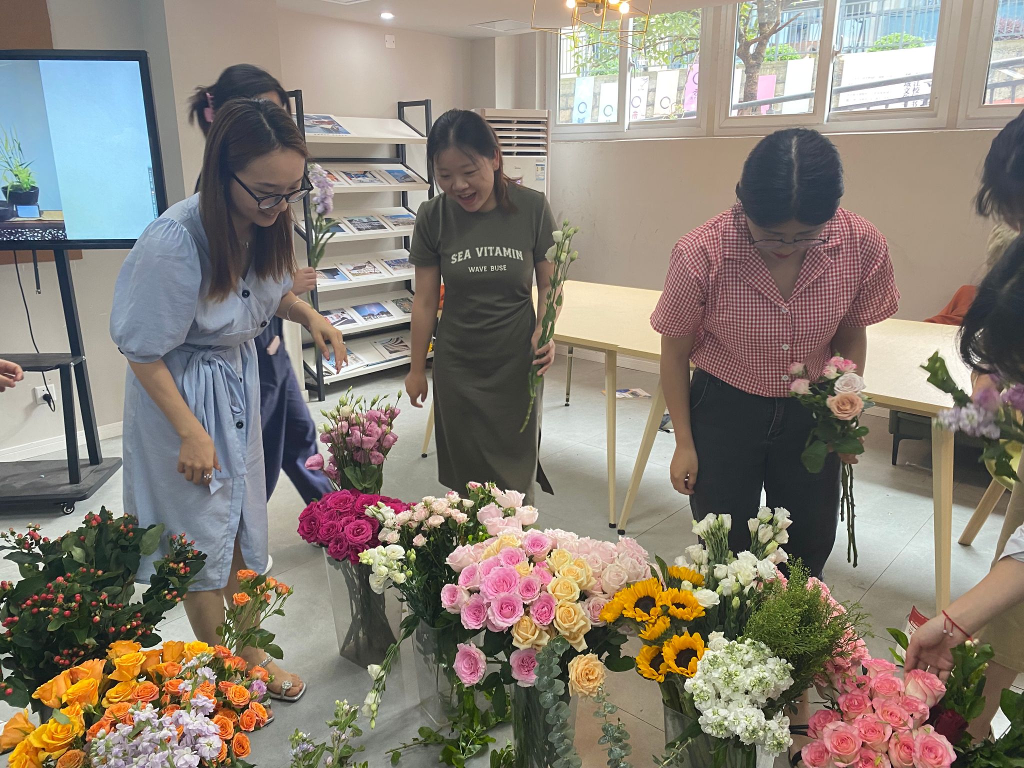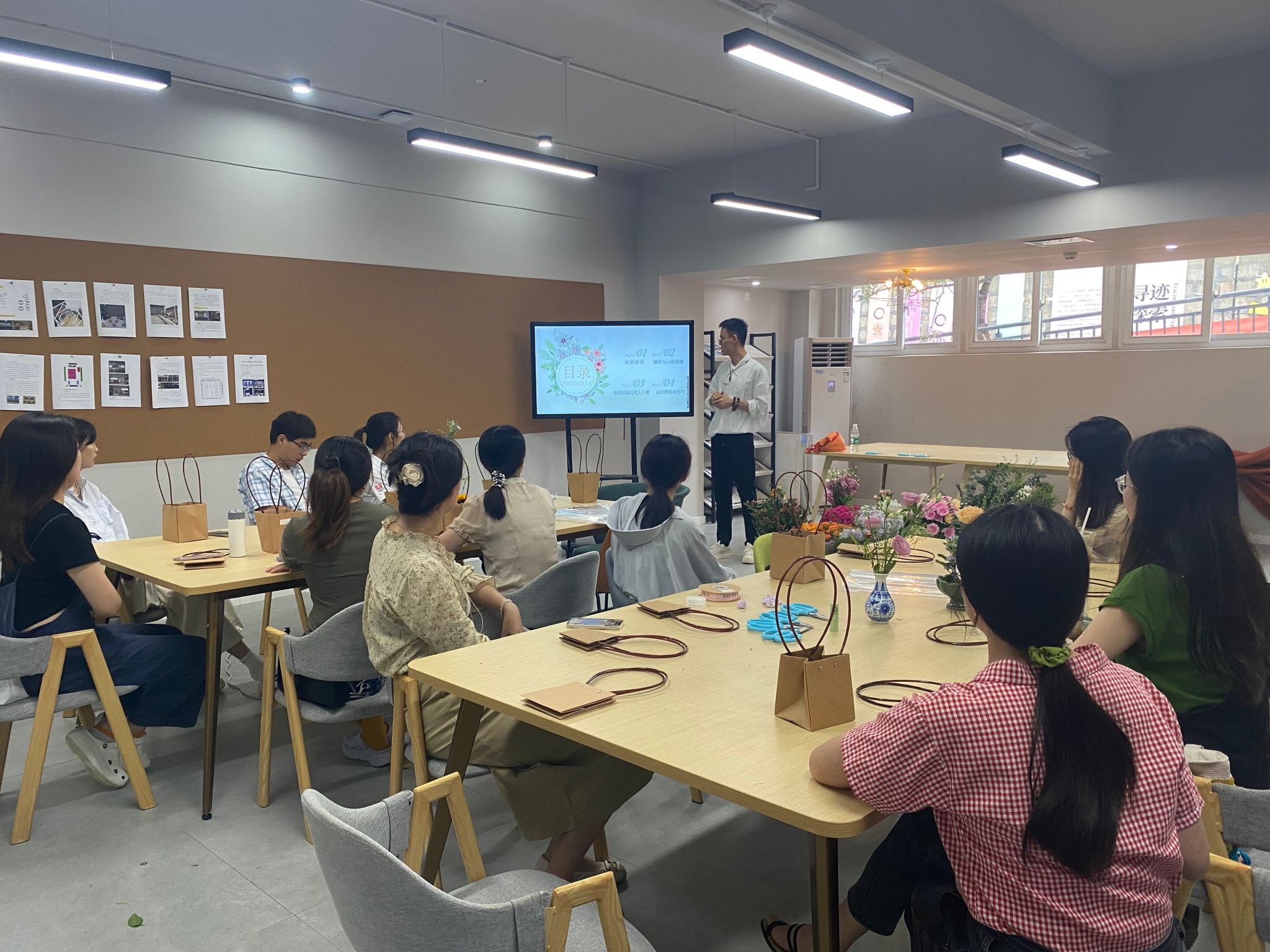 一草一木皆可入画,一荣一枯皆是意境。期末到来,又是学期最繁忙的阶段,为了舒解老师们的工作压力,放松心情,拥抱自然芬芳,体味艺术之美。6月19日下午,由重庆移通学院工会委员会主办、远景学院承办的“花艺鉴赏与插花体验”工会活动在綦河书院长风·交流空间圆满举行。活动由远景学院艺术史教师胡挽澜主讲,现场与大家一起了解宋代文人雅事、欣赏古典花艺之美、掌握插花的基本方法、开展插花艺术实践。