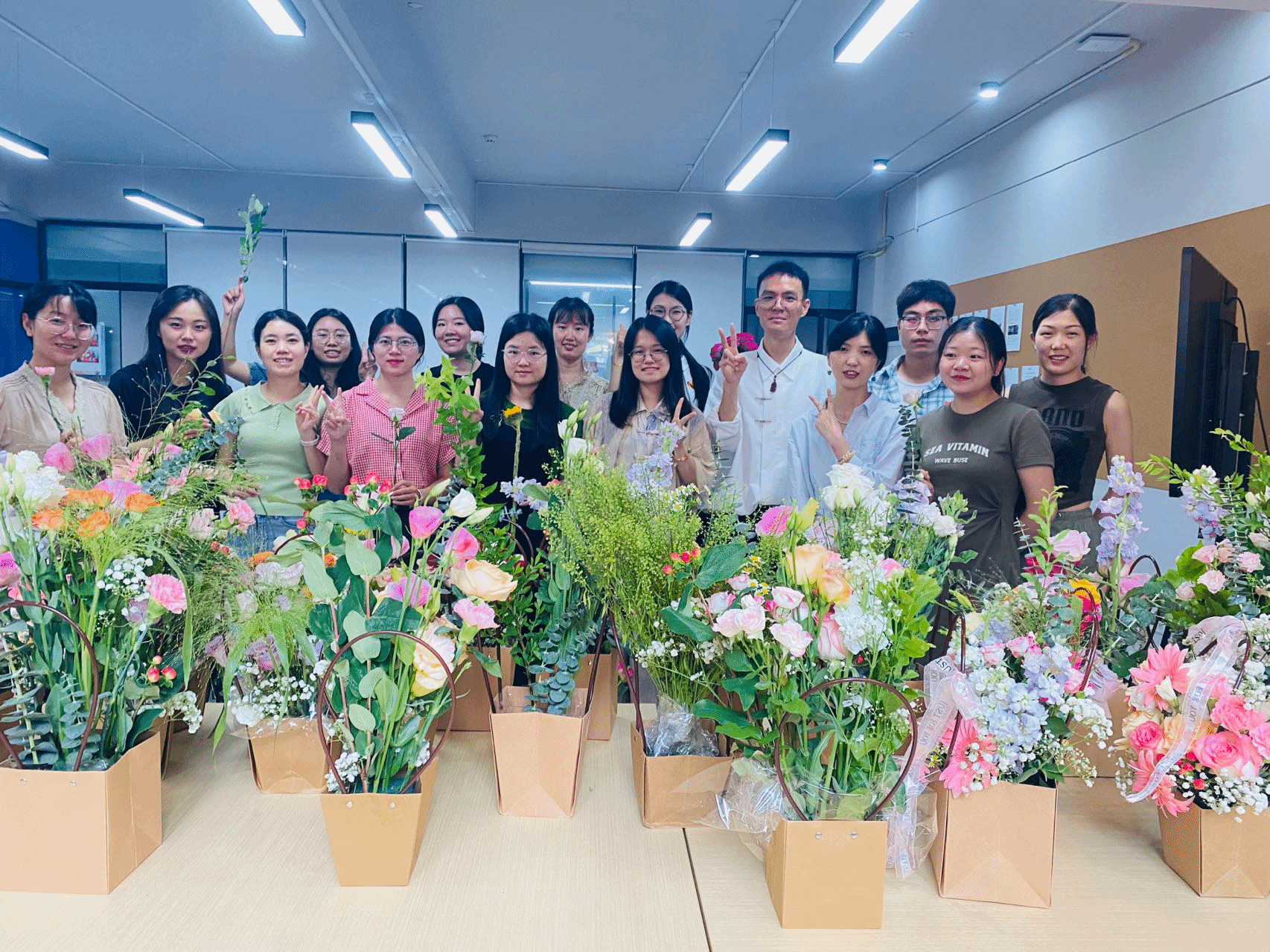 在实践环节,老师们在胡老师的指导下亲身体验,学会了基本的插花技巧,创作出各具特色的作品。这些作品不仅能够为他们的生活增添自然芳香,更让他们在繁忙的工作中找到了宁静与愉悦。