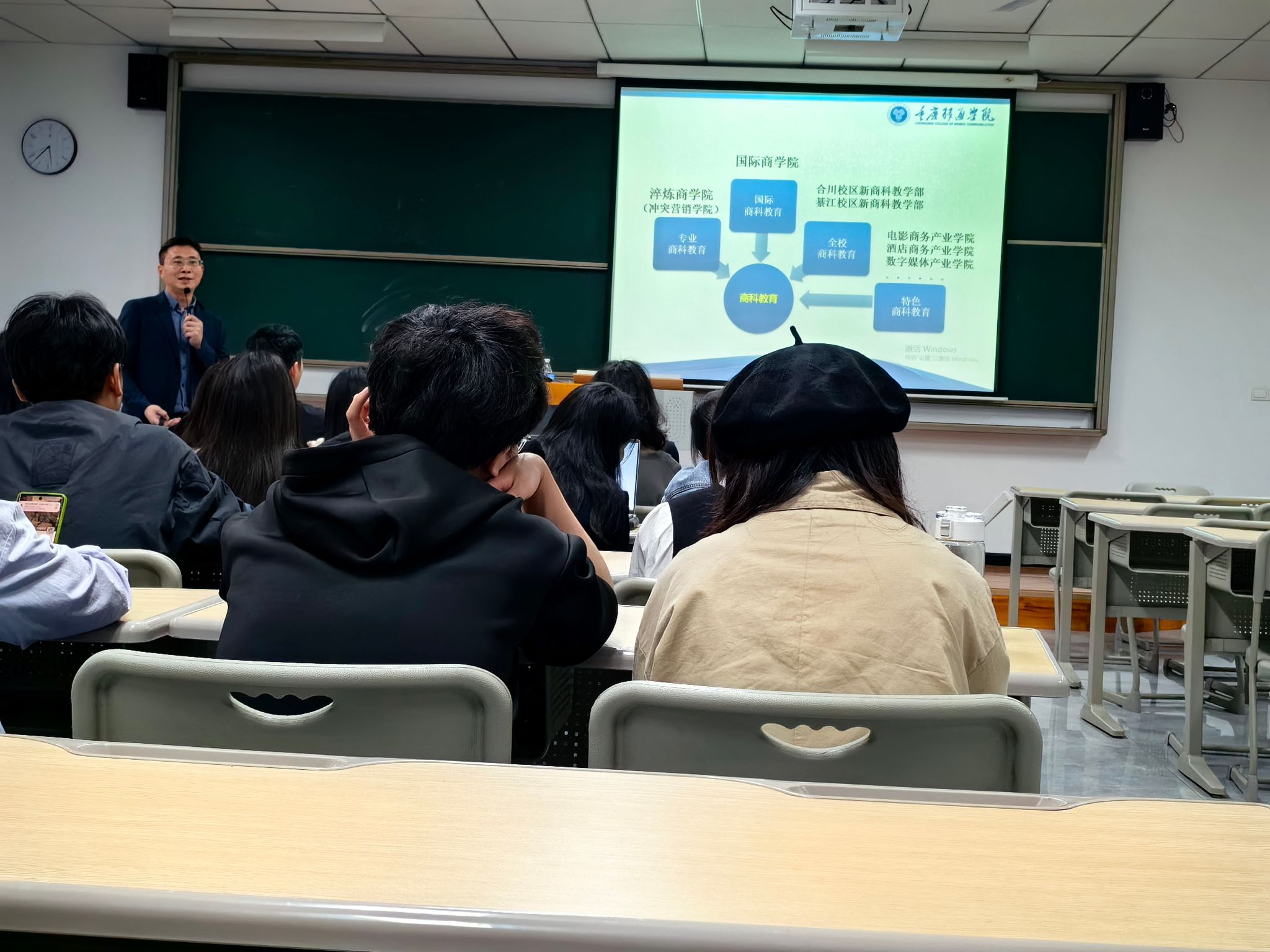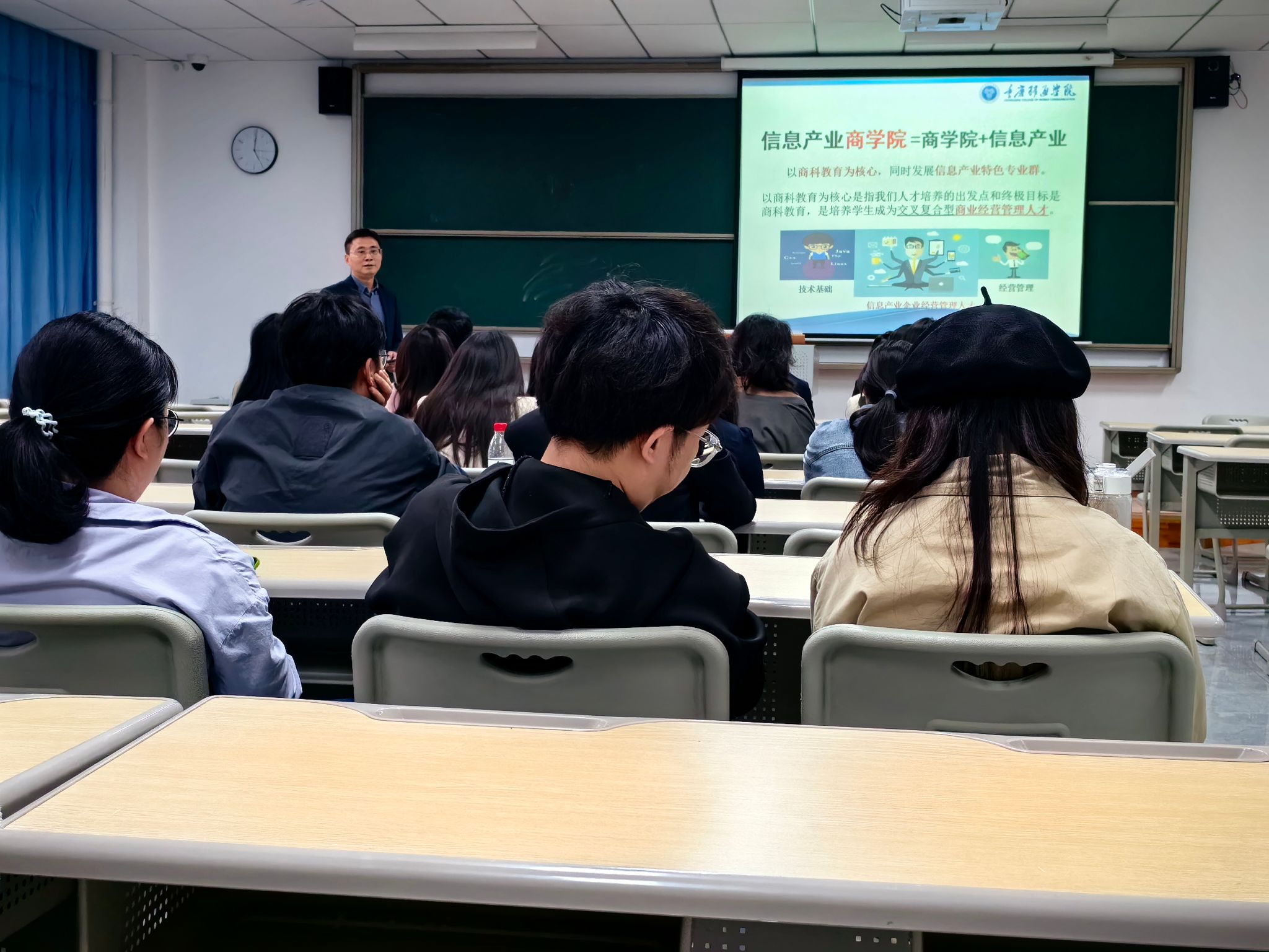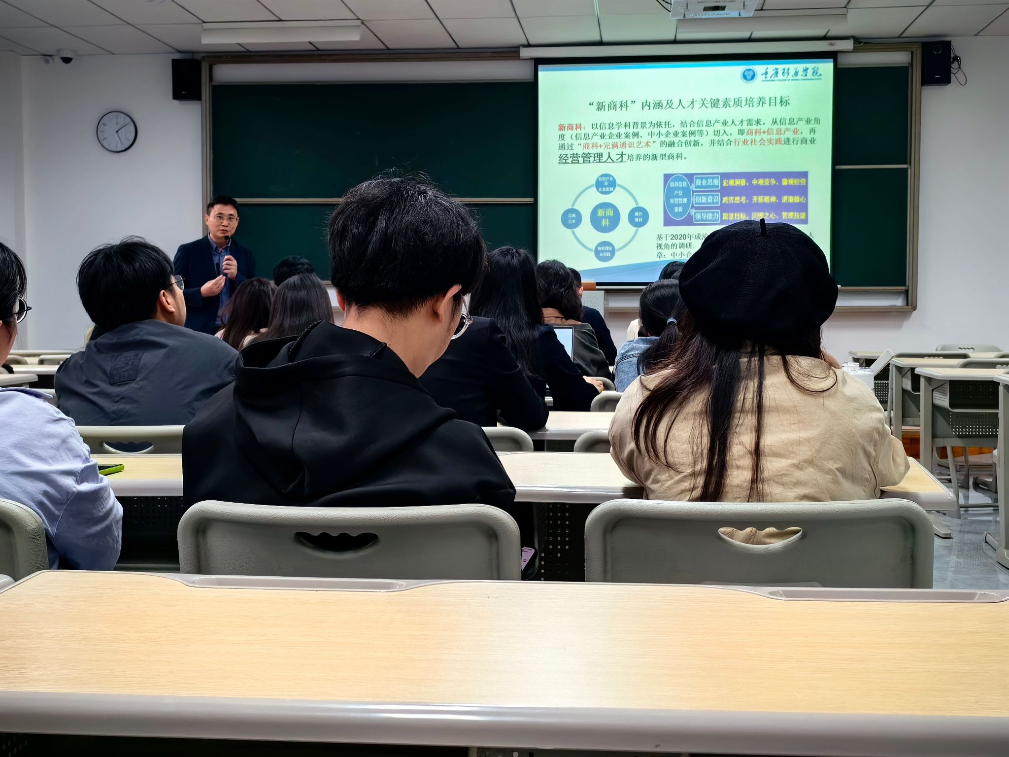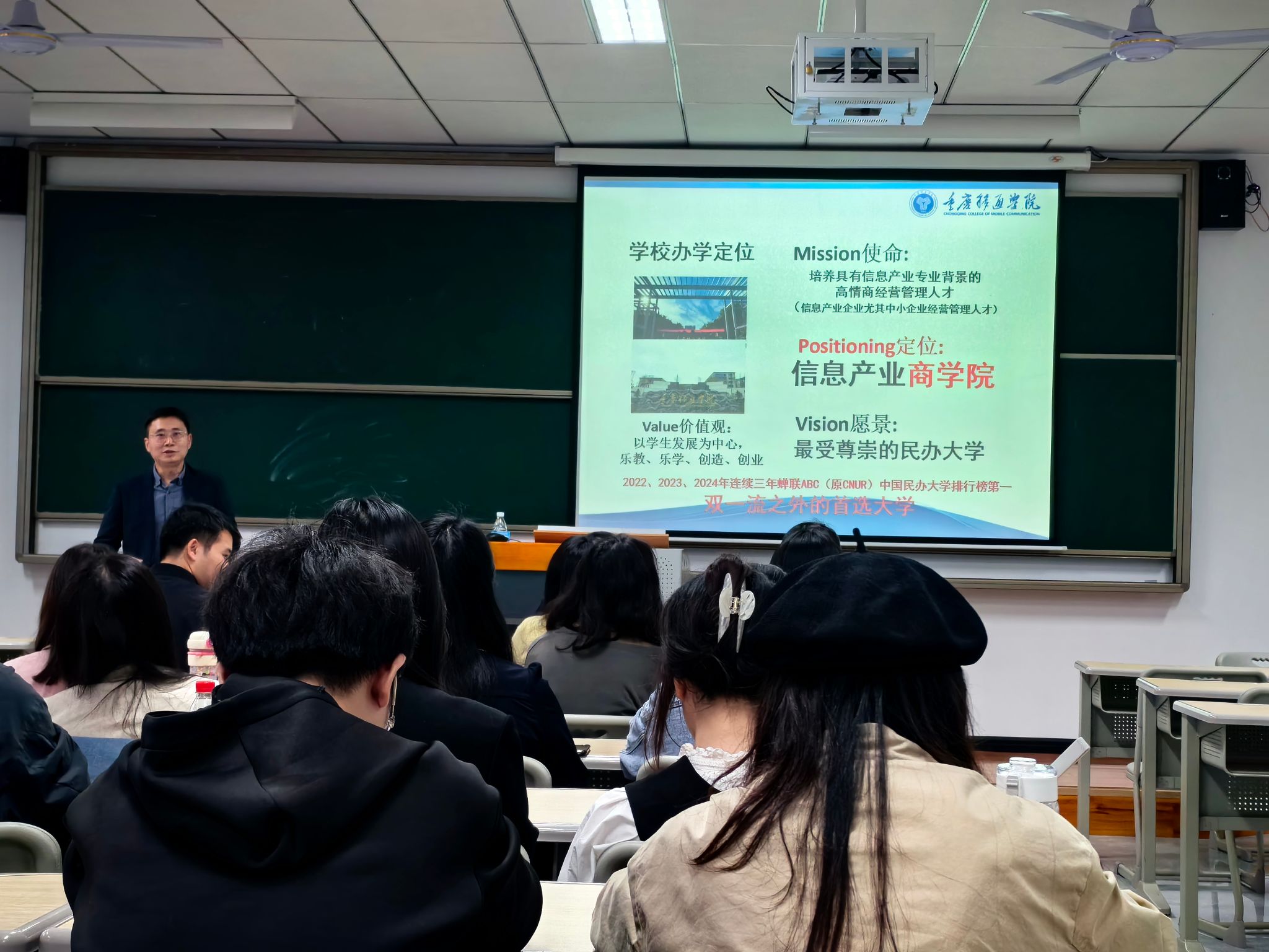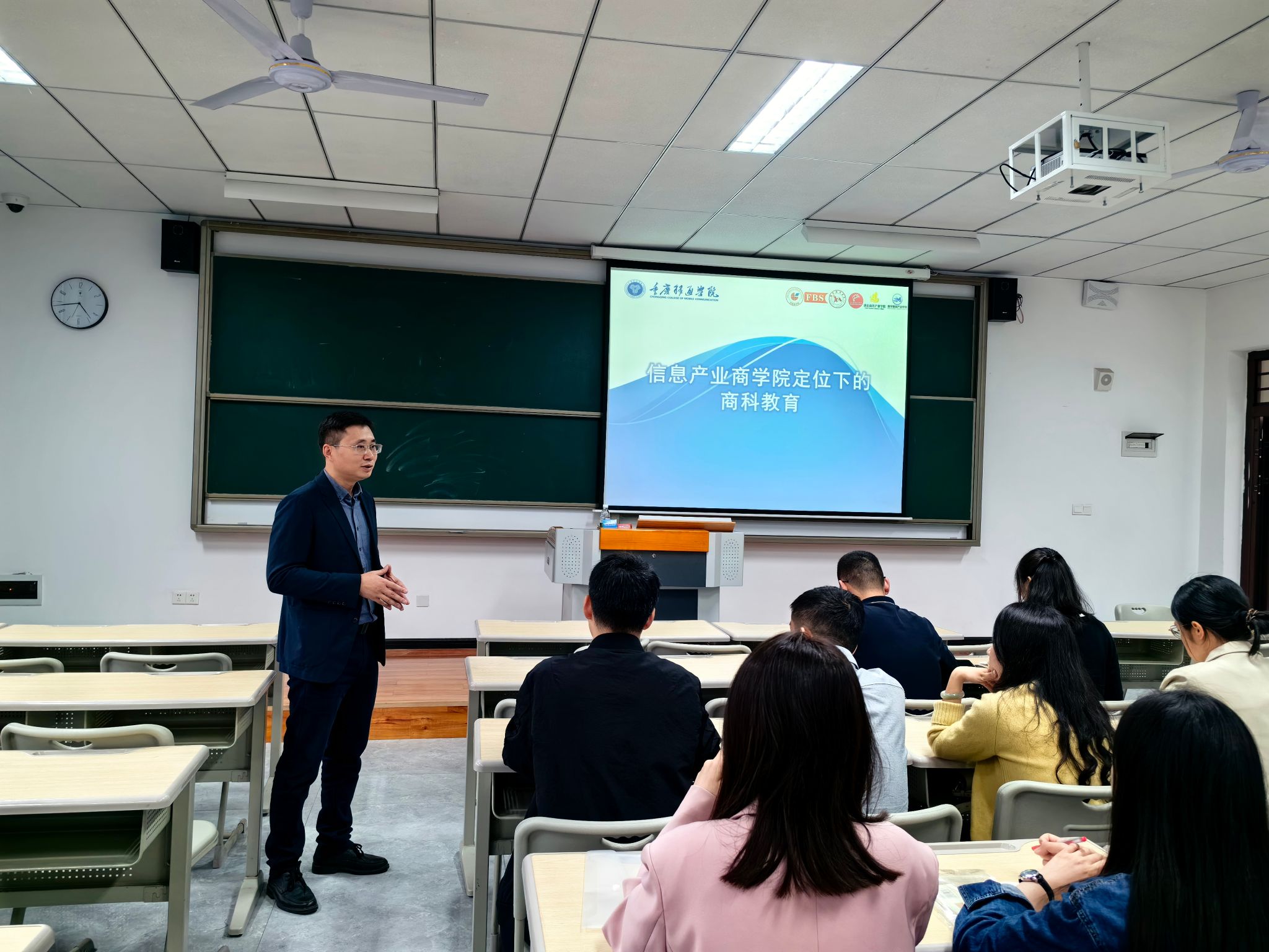 为进一步贯彻学校发展理念,让老师们了解学校办学定位模式。为此,綦江新商科教学部的全体教师在校长助理兼淬炼商学院院长张平的主持下,于2024年4月24日下午15:30,在智者楼202进行了一场主题为“创新引领,智绘未来”的信息产业商学院定位下的商科教育交流会。