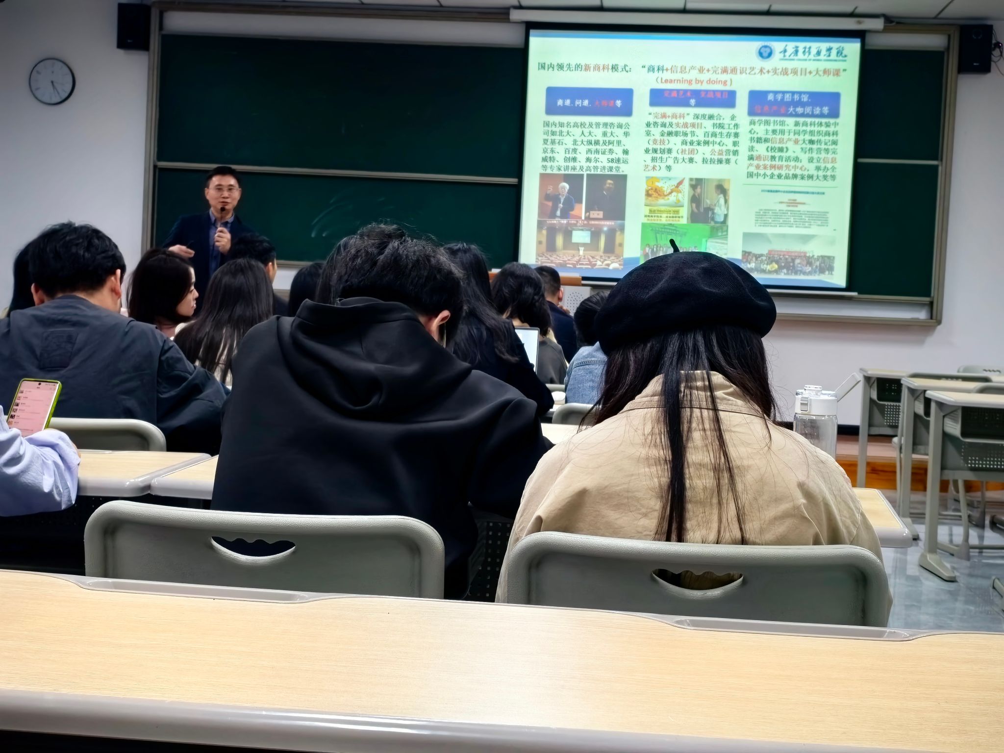 张助理以:“商科教育解决的问题?”作为出发点,指出了“新商科”内涵及人才关键素质培养目标。商科教育可以培养信息产业经营管理素质,商科教育解决的问题:商业思维、创新意识、领导能力。我们的“新商科”教育模式是以:“商科+信息产业+完满通识艺术+实战项目+大师课“相结合的国内领先的新商科模式。此外,老师们也了解到商科教育的四大板块:“专业教育+国际商科教育+全校商科教育+特色商科教育”。