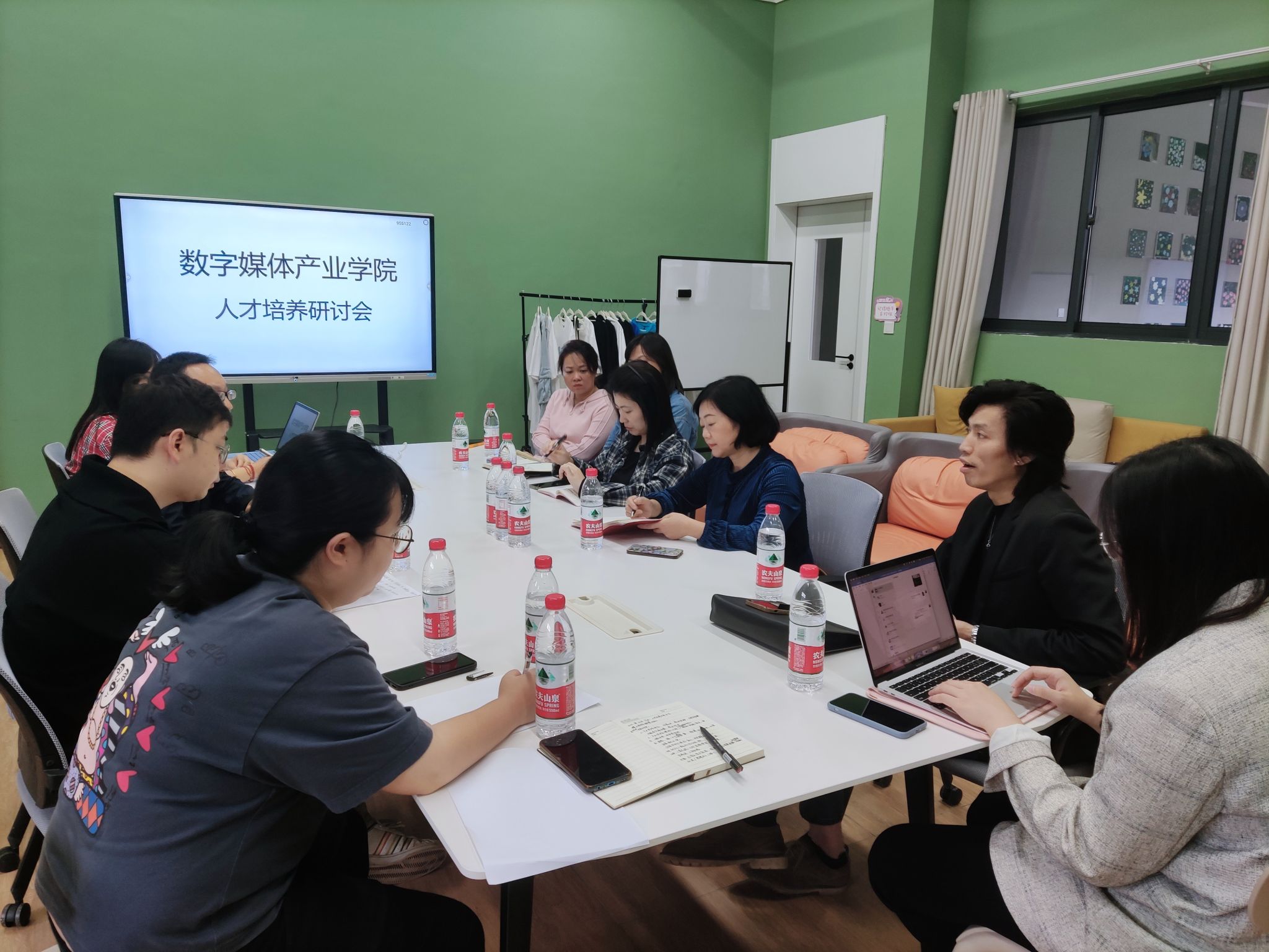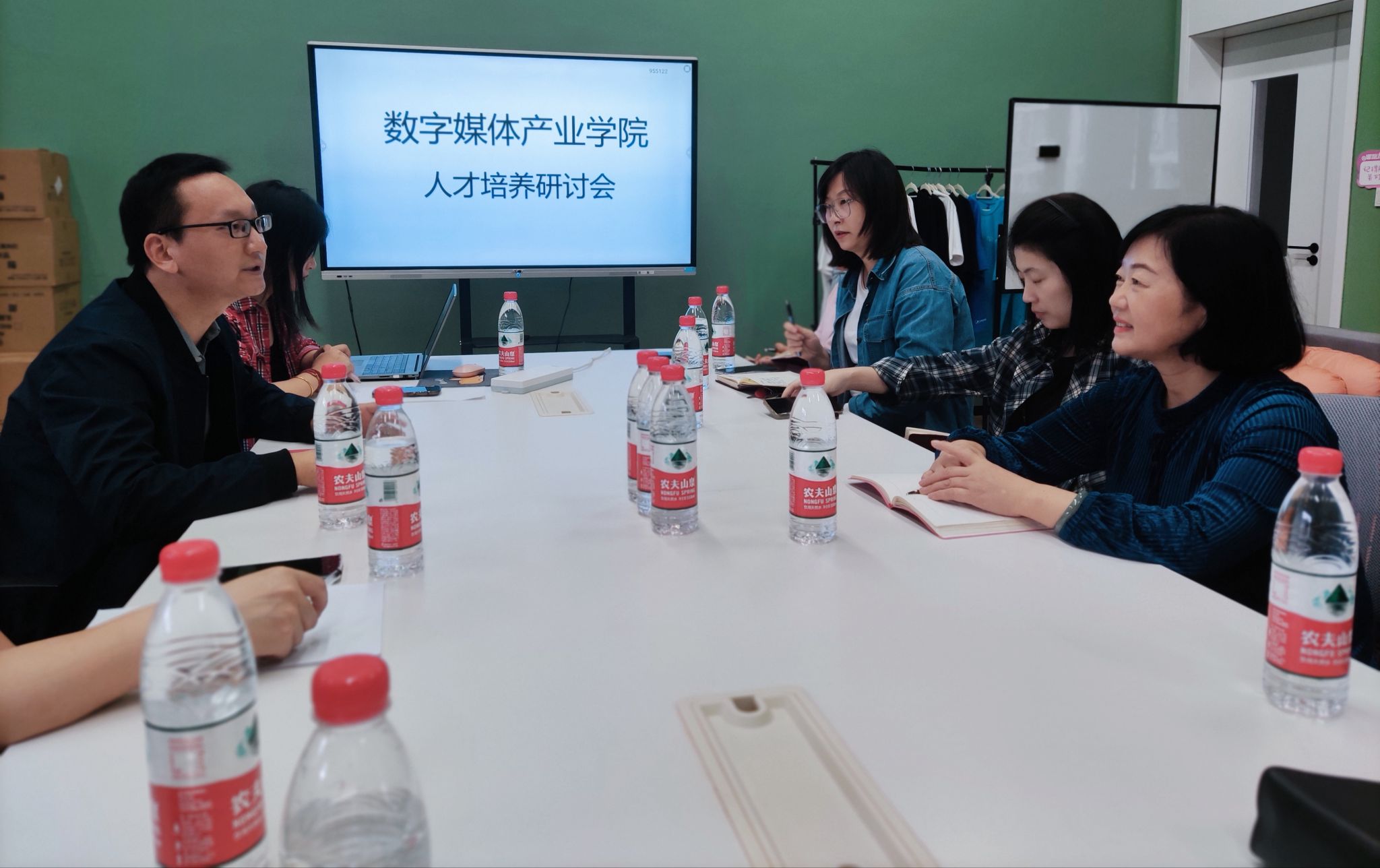 为了进一步完善数字媒体产业学院人才培养、课程体系,提升教学质量和水平,10月10日下午16:00,重庆移通学院、綦江融媒体中心、重庆头角文化传媒有限公司共同探讨人才培养及未来合作发展研讨会在綦江校区横山书院HS222召开。本次会议由范保珠院长主持,参会人员有数字媒体产业学院全体教师、綦江融媒体中心马主任一行四人、头角文化传媒黄总监一行。
