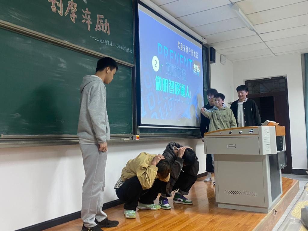 针对开学来发生的一系列事情,此次年级会也非常重视培养同学们的安全意识,并生动形象地给同学们上了一堂“防诈骗”的课。在生活中,同学们经常接到诈骗电话,一不注意会被犯罪分子带进圈套,六个班班委精心准备了小品《巨额来电》,充满笑声的同时让同学们不再轻视“网络诈骗”,年级长王欣怡为大家讲述关于被电信诈骗的亲身经历,更加使同学们提高警惕。另外,在学校中,尤其在宿舍也存在一定的安全隐患。年级长于雨鑫带领同学们了解了寝室禁用的一系列大功率电器,讲述了消防安全隐患,财务安全隐患等,并告诫大家确保自身的安全,对自己负责,做明智移通人。