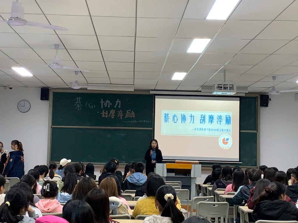 为让同学们更好的适应大学校园生活,遵守校内规定,对未来有人生规划,确保学子能够以端正的态度,良好的状态和饱满的热情投入到学习与生活中,淬炼商学院工商管理类20-25班于2021年10月26日晚在勇者楼202开展了主题为“綦心协力·刮摩淬励”的年级会,同时辅导员苟桃吉和班导师刘敏参加了本次年级会。