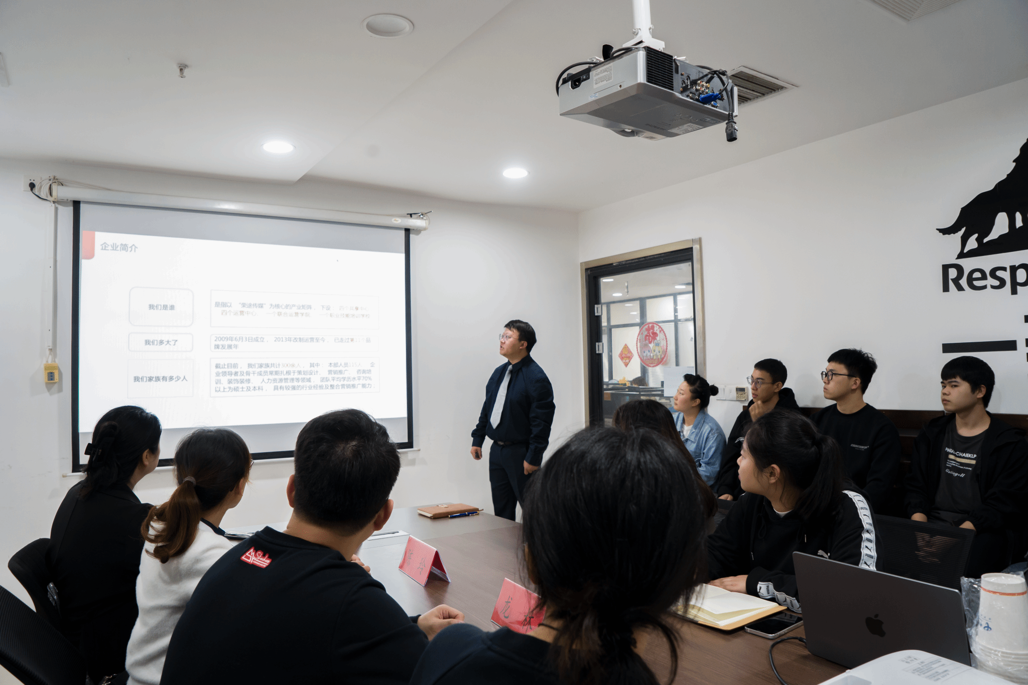 在交流会中,重庆荣途文化传播有限公司总经理沈亚琦对公共基础教学部一行表示欢迎,并就企业基本信息、公司特色及企业文化做出介绍。沈总表示“随着企业的发展,本公司致力于为客户提供‘整体营销解决方案’的品牌与产品服务商,各项板块将蓄势待发,急需大量人才和体系支持,期待与重庆移通学院强化校企共建,共谋合作发展美好蓝图。”