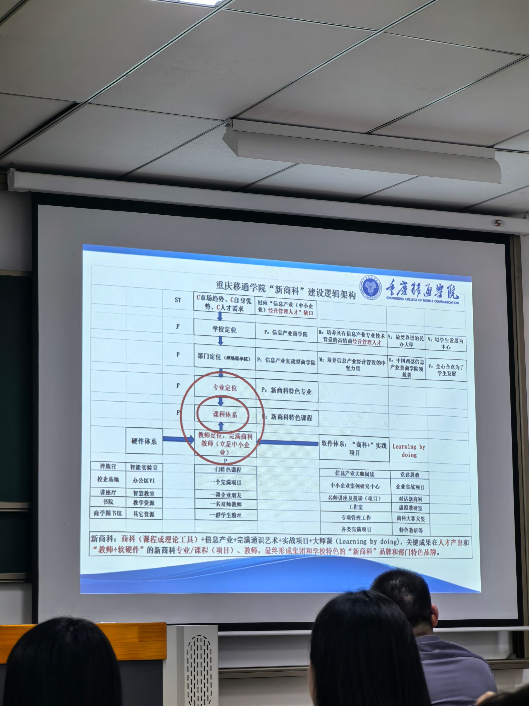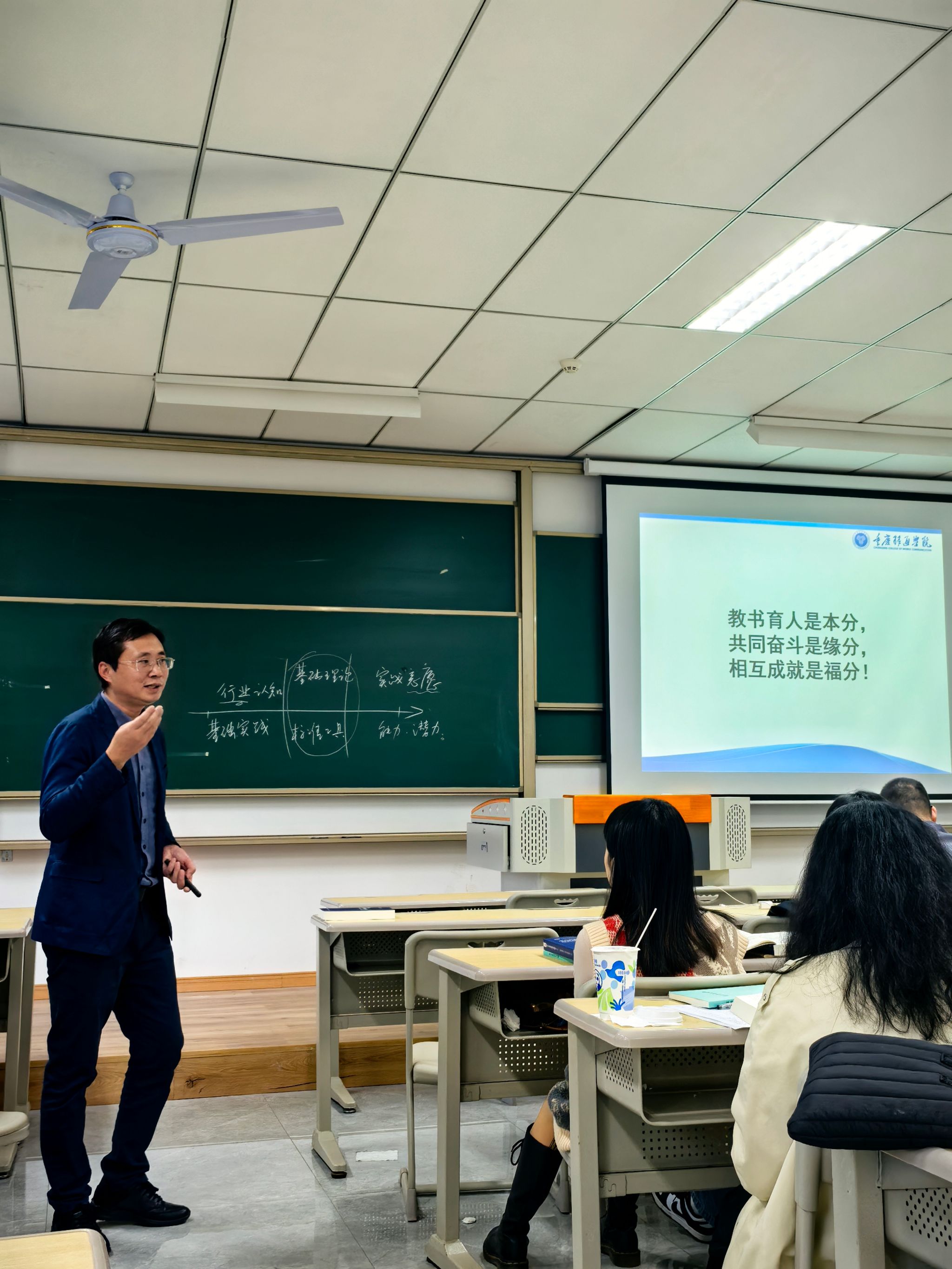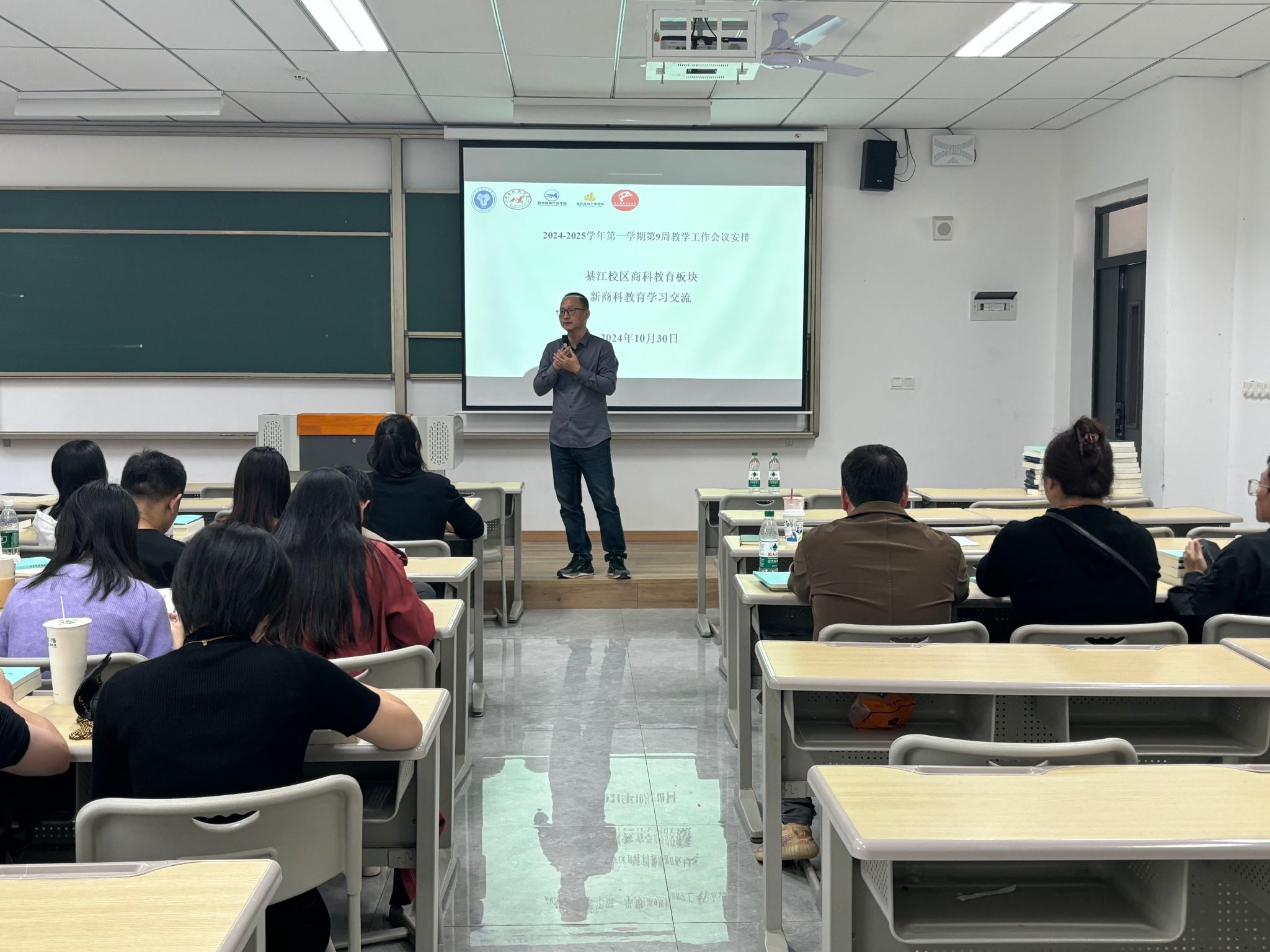 10月30日下午14:00,为进一步贯彻学校发展理念,让老师们更好地了解“新商科”教育模式,校长助理兼淬炼商学院院长张平在行者楼104教室为商科板块的教师开展了一场主题为“未来已来:开创新商科教育新篇章”的信息产业商学院定位下的新商科教育学习交流会。交流会由綦江新商科教学部主任范保珠主持,全体教师参加。