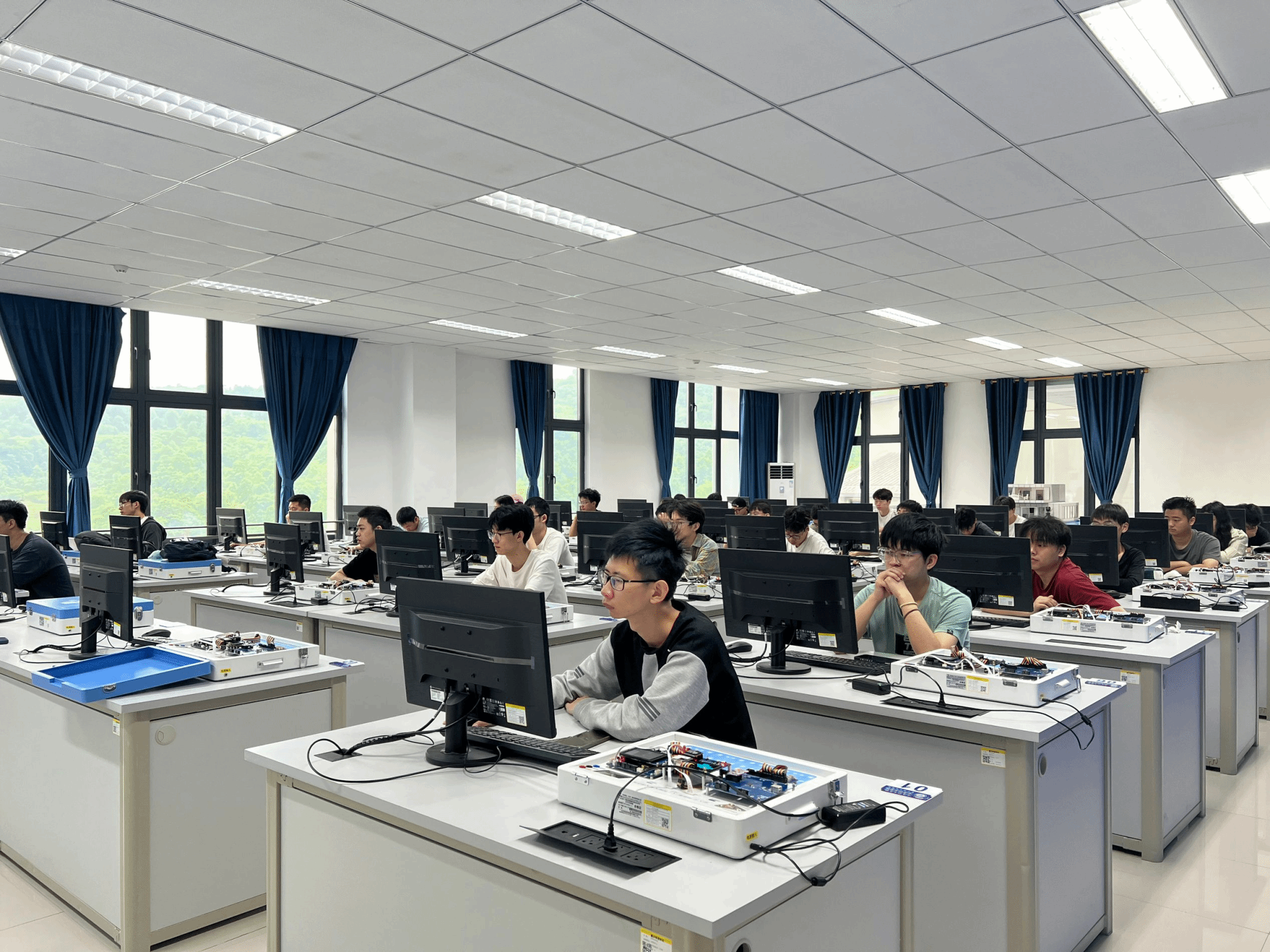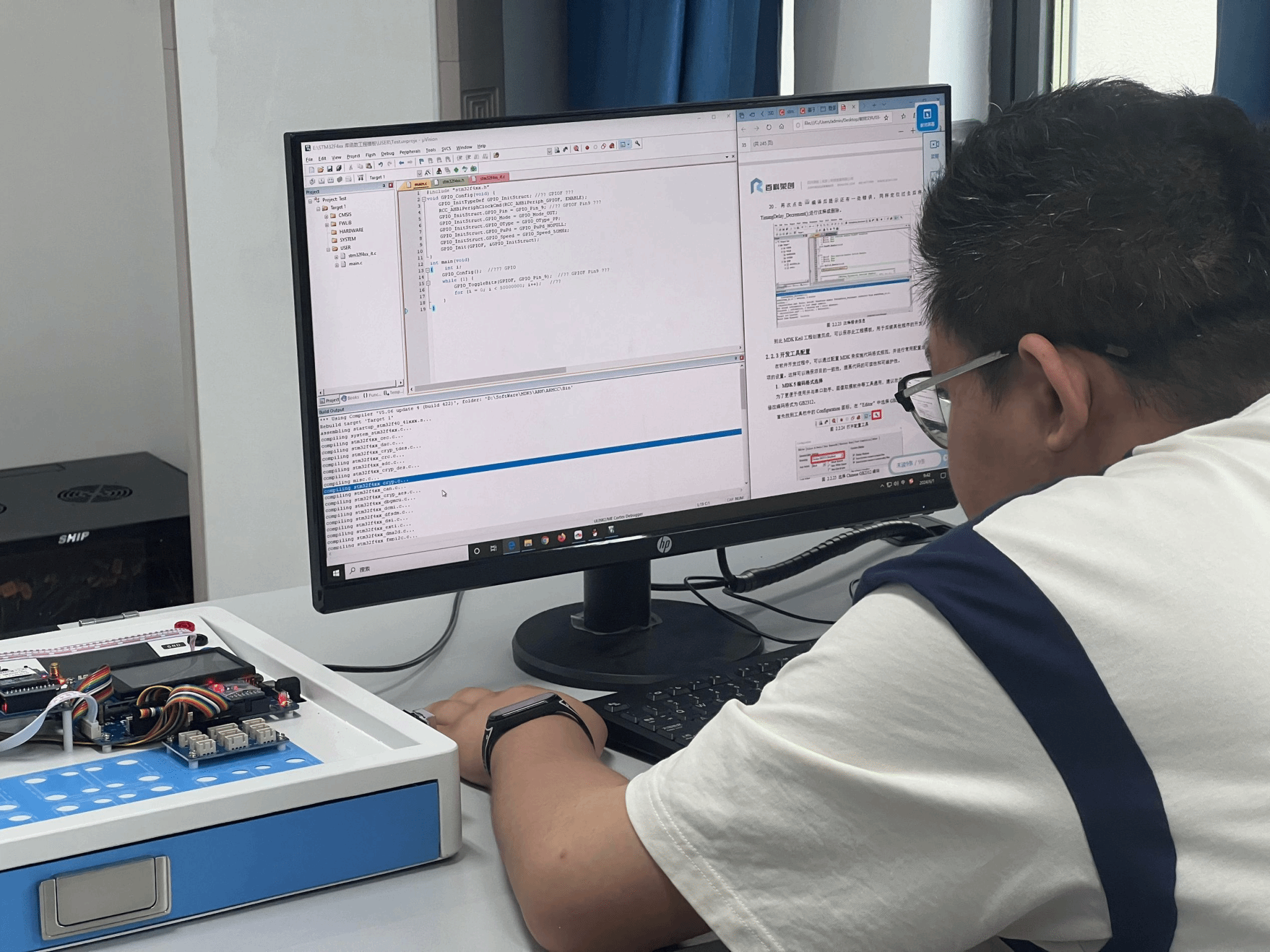 后期历时两天在我校贤者楼404开展了嵌入式专业技能课程培训,由高级工程师-陈劲松向我校学子进行专业技能培训,在课程中,学生们学习了解了STM32F4系列微处理器,带领学生从零开始进行了STM32F4微处理器的开发,让学生了解一个微处理器如何从芯片官网获取开发库文件并进行移植开发,从无到有的进行了STM32F4系列微处理器上几乎所有的功能外设的专项实验;在各个细节点上,都一一详细的进行说明和重点关注,让学生对STM32F4微处理器有了一个全面的了解,并掌握了涵盖所有功能外设资源的应用开发。这种“学以致用”的教学模式使得学生们能够更加理解所学的知识。