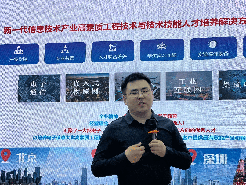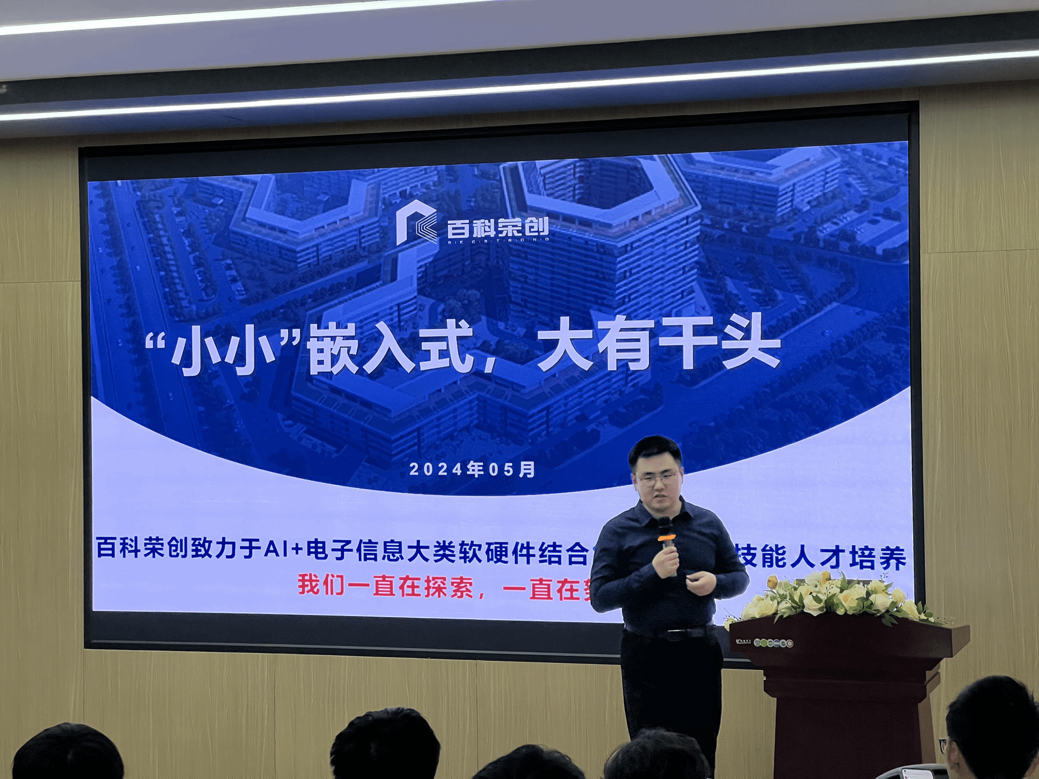 此次宣讲会在智者楼304开展,会上吸引了众多学生前来参加,气氛热烈而庄重。高级工程师-陈劲松详细介绍了公司的发展历程、业务范围以及未来规划。他强调了公司对人才的重视和培养,并详细解读了招聘岗位的具体要求和待遇。通过一系列生动的案例和深入的分析,学生们对百科荣创有了更加全面深入的了解,对嵌入式企业应聘及嵌入式企业对专业人才需求有了深入了解,也对未来的职业生涯充满了期待和憧憬。