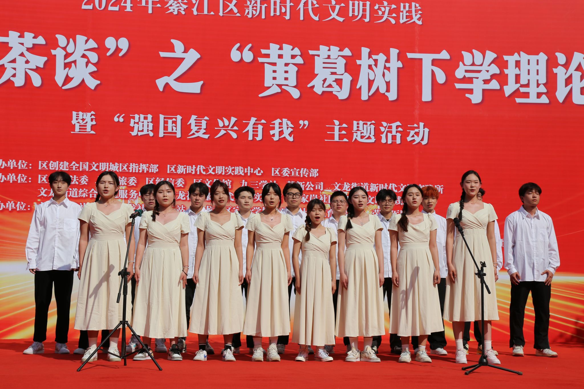 不仅是社区,其他地方也存在志愿者们的身影——2023级计科5班的同学们前往綦江区特殊教育学校,与5年级的学生共同开展了主题为“雷锋精神代代传,爱心温暖满人间”的志愿服务活动。“手绘春天”“美食烹饪”“娱乐互动”,志愿者们放下偏见,为孩子们带来温暖,在行动中传承雷锋精神,贡献自己的青春力量;“南州茶谈”之“黄葛树下学理论”,Fireworks合唱团在活动中演唱歌曲,用优雅的嗓音传递出清澈明朗、充满力量的情感,展现了生命的美好和希望。