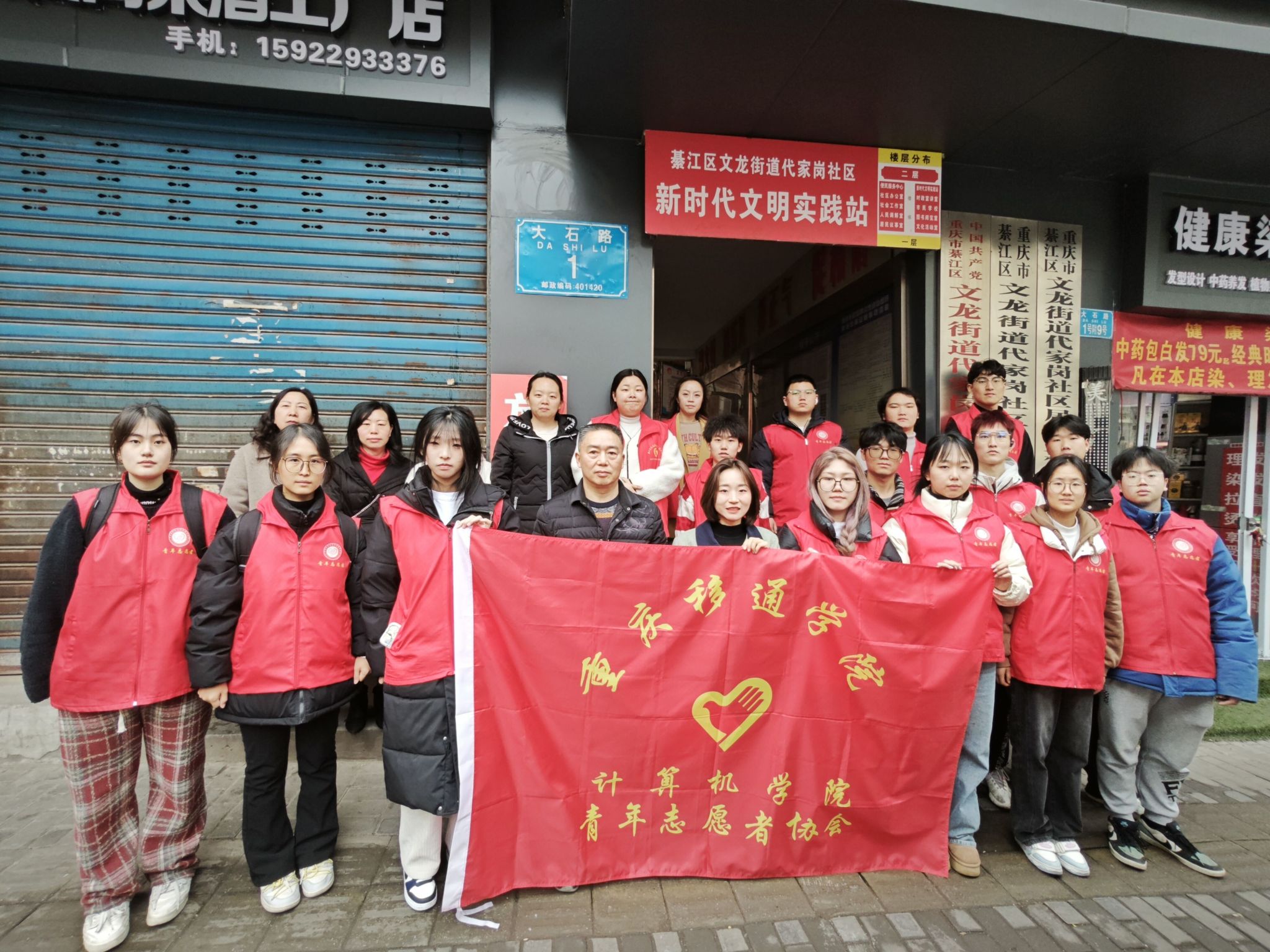 作为奉献精神意志的具体体现,志愿者活动中的参与程度直接决定志愿服务开展的好坏。我院青年志愿者协会坚持组织每周五的“綦江是我家,人人爱护她”常态化服务。在雷锋月里,累计召集了四期志愿者,对文龙街道进行清理;2022级计科2班的同学们在代家岗社区配合工作人员,进行小广告清理及斑马线文明劝导,让社区变得更加美好的同时,雷锋精神也得到了传承和发扬。