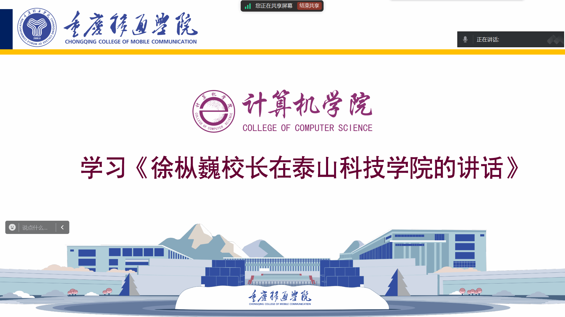为贯彻落实《重庆移通学院关于学习徐枞巍校长讲话的通知》精神,深刻理解并实践“四位一体双院制+特色课程”人才培养模式,以及学校“未来成为双一流之外的首选大学”的办学目标。2024年9月12日下午,计算机学院全院教职工在线上组织开展了《徐枞巍校长在泰山科技学院的讲话》的学习。
