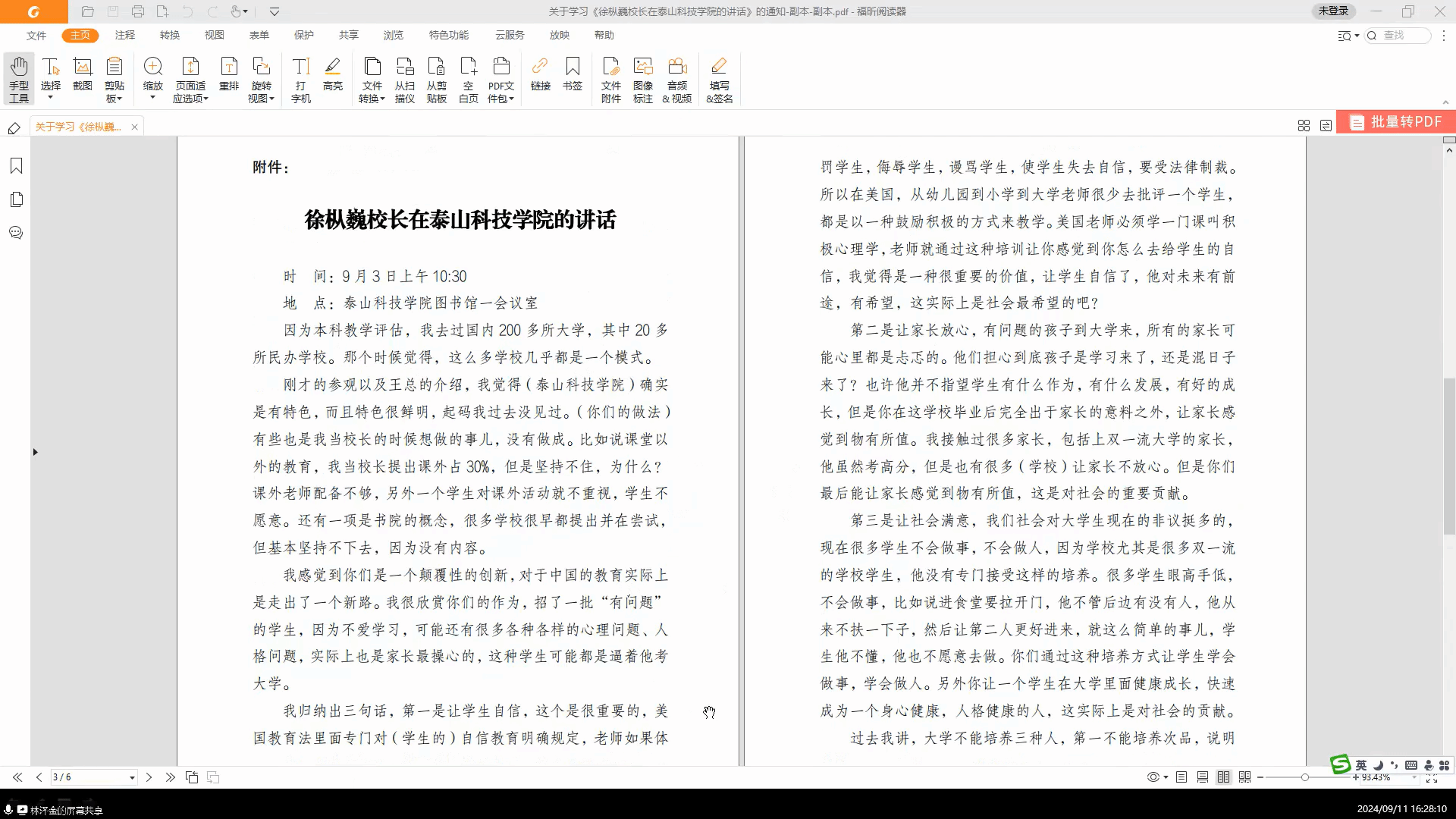 此次学习由计算机学院林泽金副院长主持,首先他带领全院教职工领读了《徐枞巍校长在泰山科技学院的讲话》,强调学习徐枞巍校长讲话的重要性,并鼓励全院教职工将讲话精神转化为推动学校发展的具体行动。随后,四位老师分享了他们的学习心得。