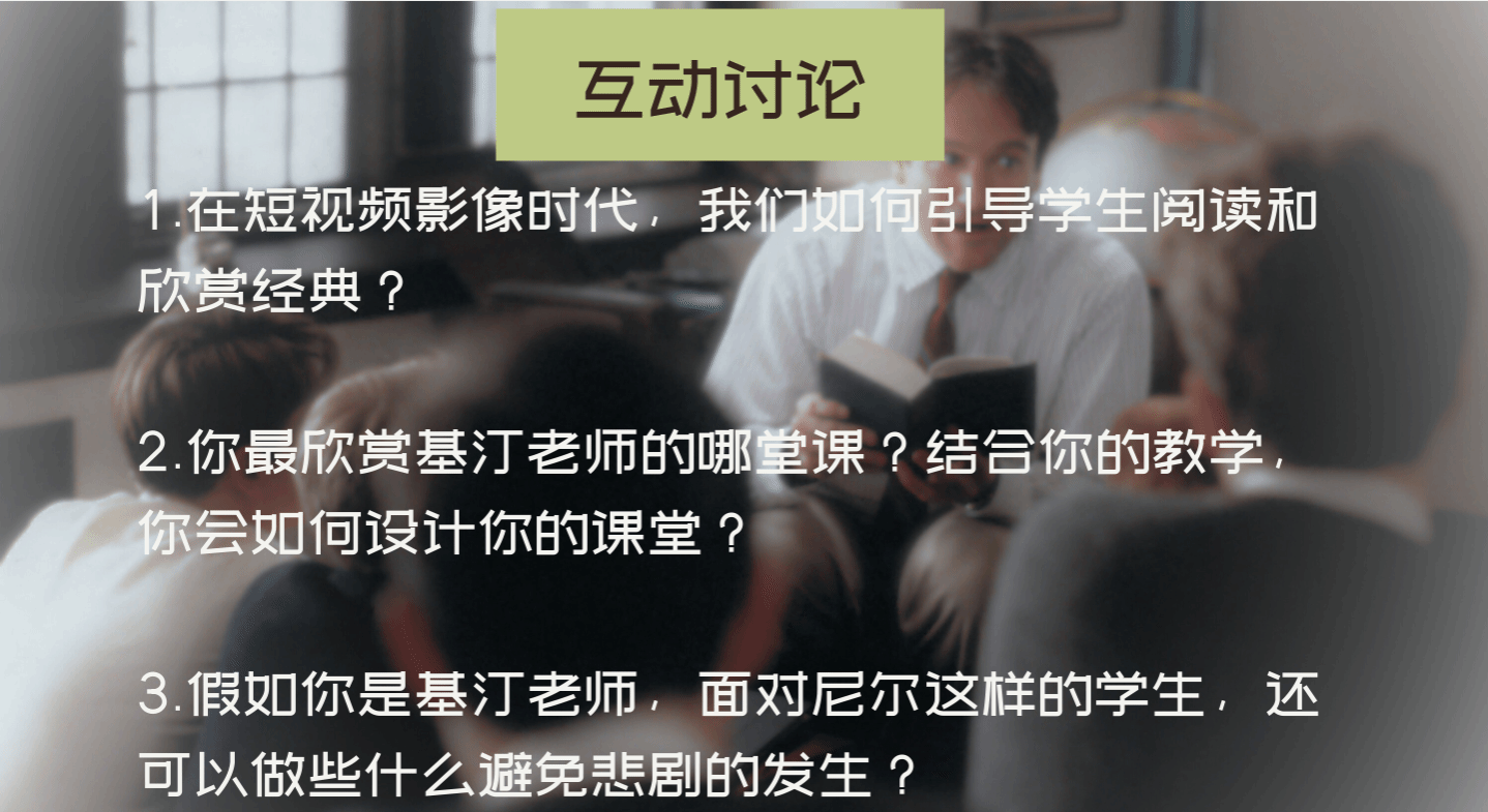 随着彭可老师深层次影片赏析的启发,在互动环节提出第二个问题——你最欣赏基汀老师的哪堂课?结合你的教学,你会如何设计你的课堂?的时候,引发了我对教育的思考,尤其是作为全生异科导师,在“无形”的课堂上,如何做才能更有利于学生成长?下面,结合我自身的教学实践以及近三年在异科导师工作开展中碰到的问题及解决过程,浅谈自己的切身体会和感受。