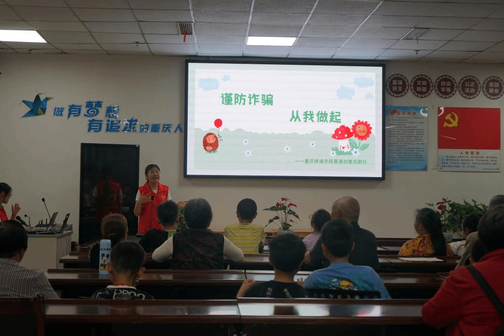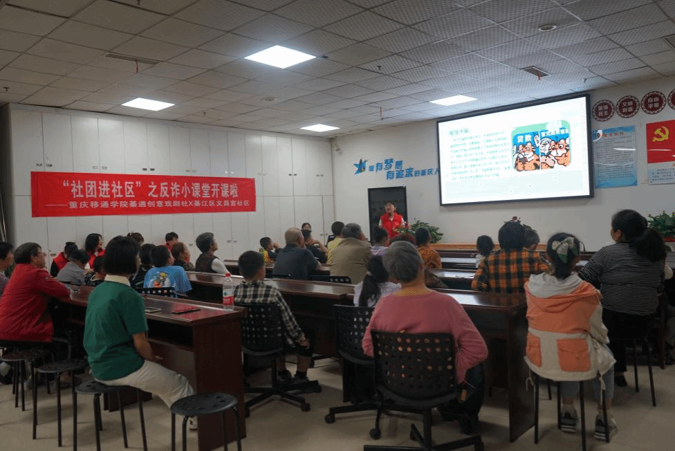 针对当下电信网络诈骗花样层出不穷的现象,4月16日下午,重庆移通学院綦遇创意戏剧社联动綦江区文昌宫社区,利用自身社团属性,通过剧目表演、反诈课堂、知识普及等方式在社区便民服务中心为老人和小朋友们联手打造了一场别开生面的防诈骗知识输出。