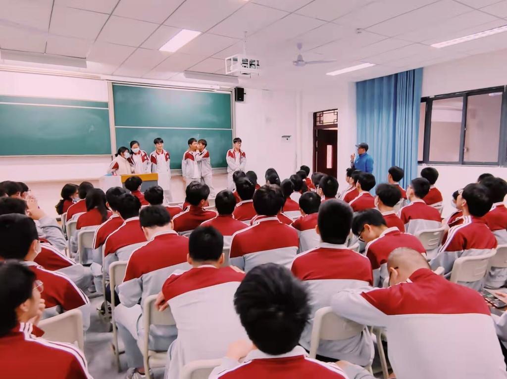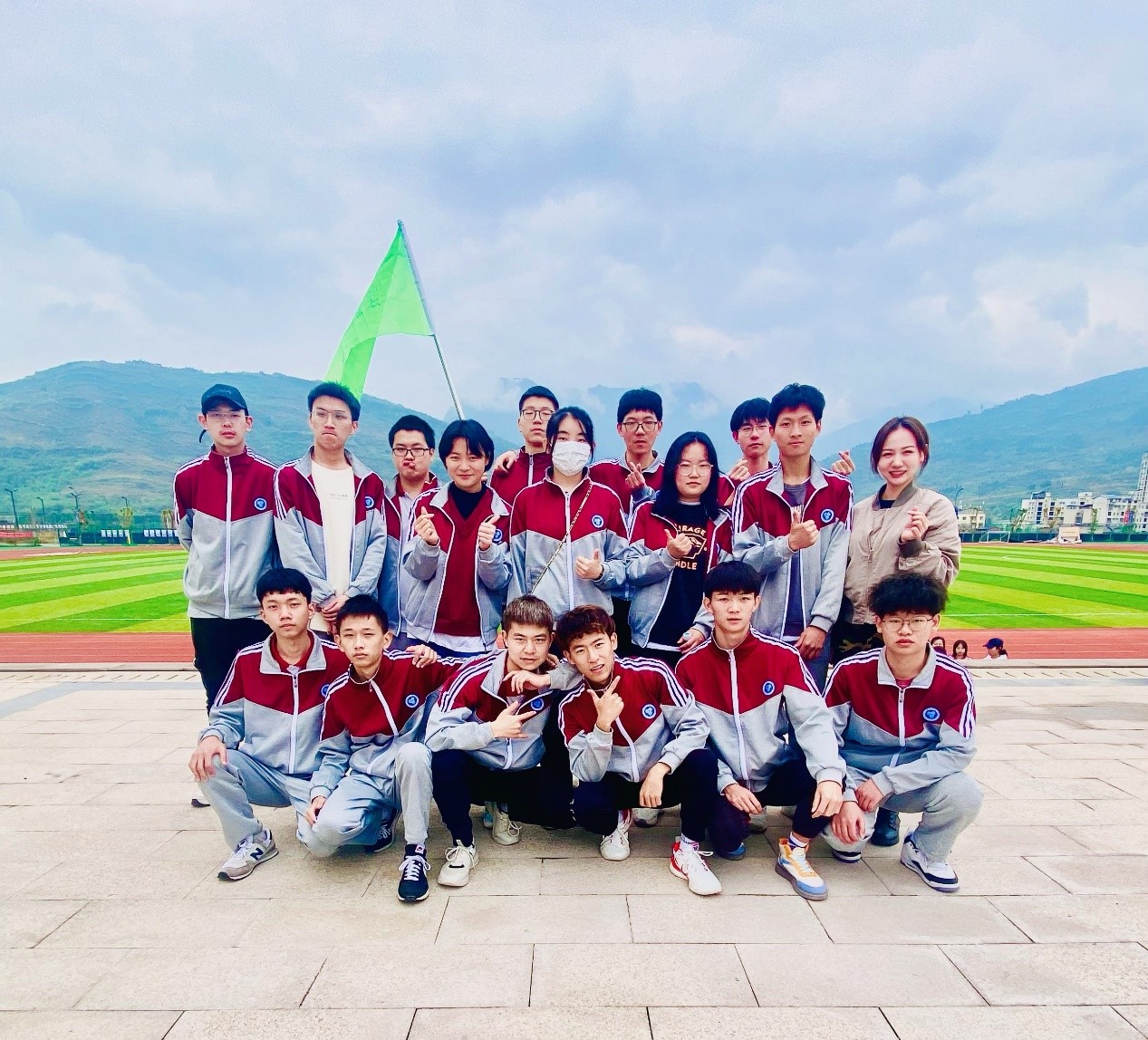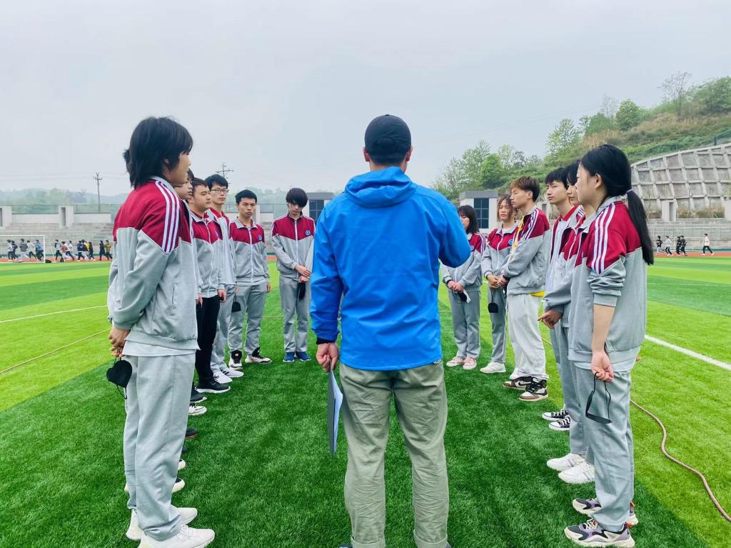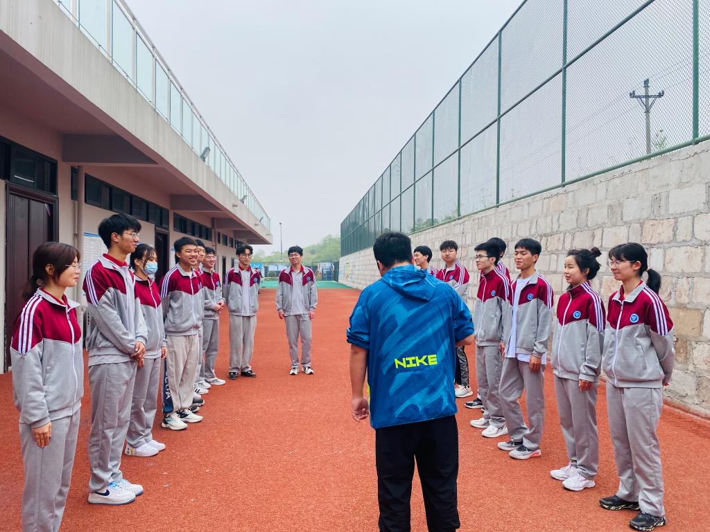 紧接着教练将两个班的同学们随机分为四个队伍,四个队也在各自的商量下有了属于自己队伍的队名、队歌、队训等完成小队文化建设,为更好的融入队伍,他们在田径场进行第一次小队文化展示的PK。