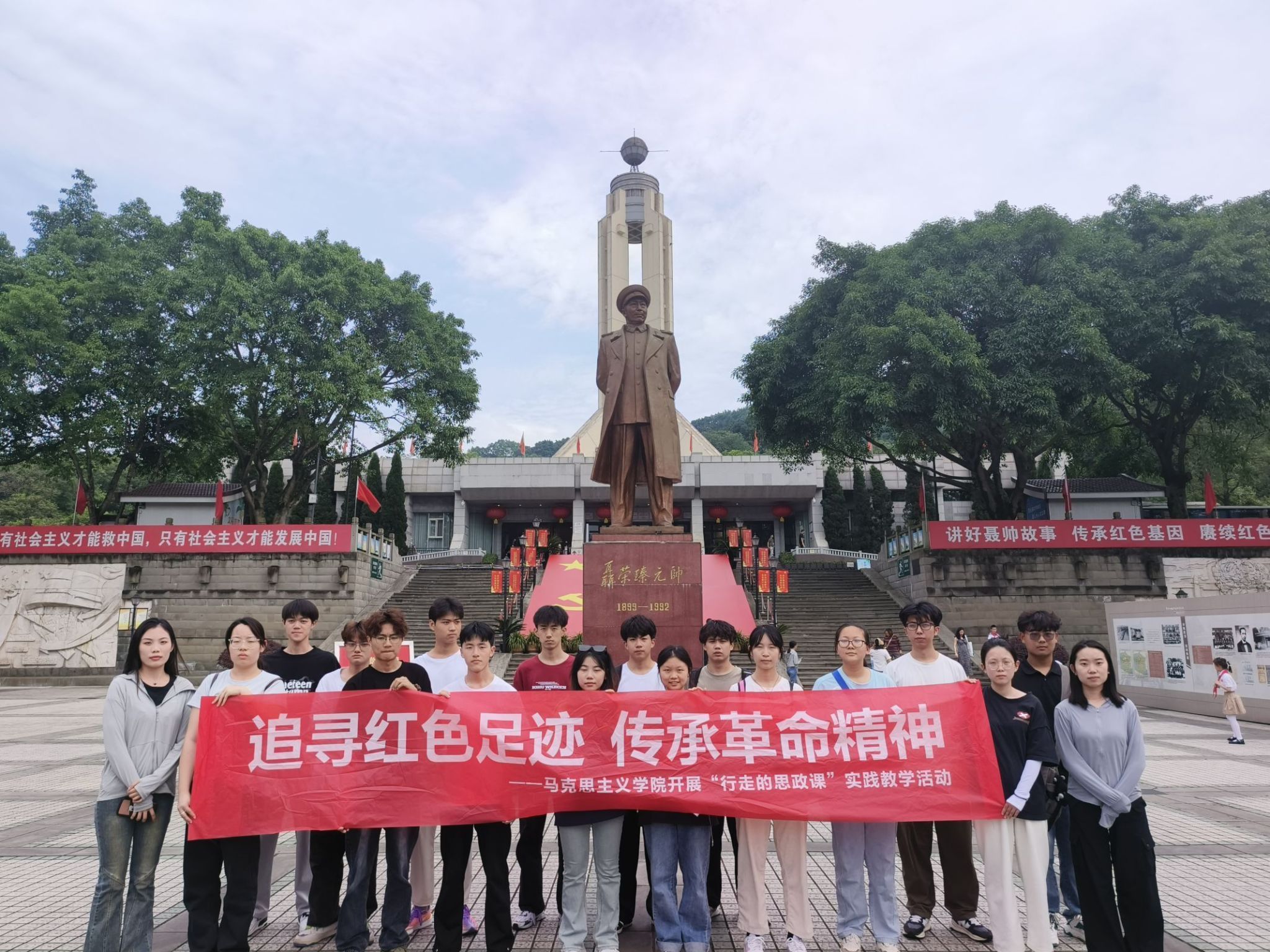 红色足迹,承载着中国共产党波澜壮阔的革命历程和不懈奋斗的光辉历史,不仅是一段段历史记忆的再现,更是一种精神的传承和发扬。依托丰富的红色资源,打造独具特色的“行走的思政课”,已然成为马克思主义学院鲜明的育人特色。此次实践教学活动旨在追寻红色足迹,重温革命先烈的英勇事迹,感悟坚定的理想信念和无私的奉献精神,将红色基因融入学生的血脉之中,激励大学生勇担时代责任,为实现中华民族伟大复兴的中国梦贡献青春力量!