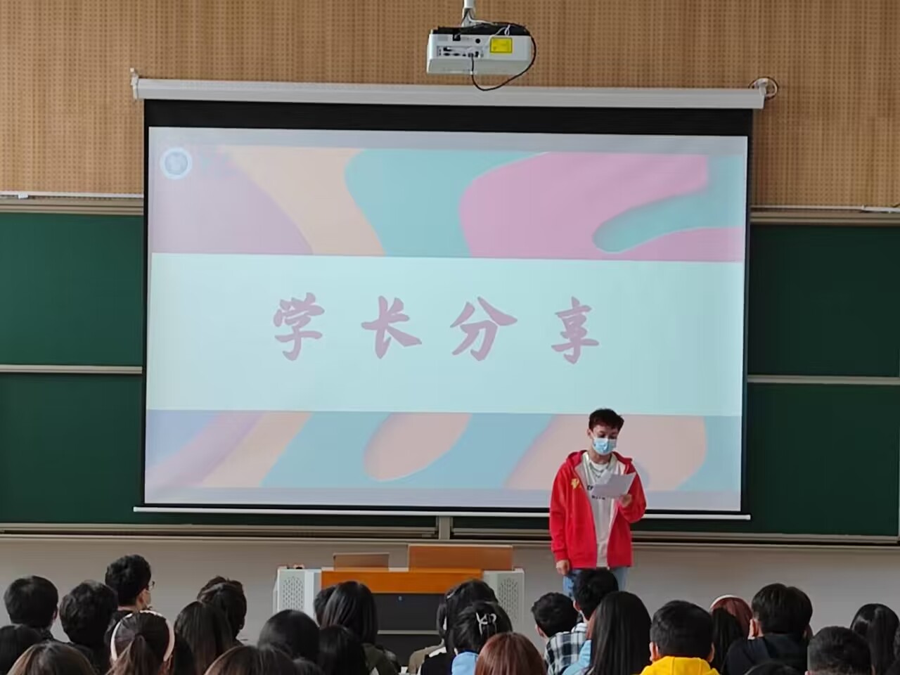 学长分享环节,合唱分团负责人、第一届校园歌手大赛及校园舞蹈大赛双冠军获奖者——陈天其同学代表2021级成员向新生分享了他的心路历程:“我的大学生活不应该只拥有课堂和任务,我还要去体验活动,分享艺术,感受热情。所以我选择加入了大学生艺术团,加入这个能让青春不要平庸,不能彷徨,渴望闪亮的大团体。”